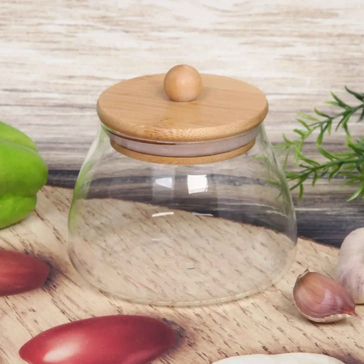Стеклянная банка «Хай-Тек» с бамбуковой крышкой
