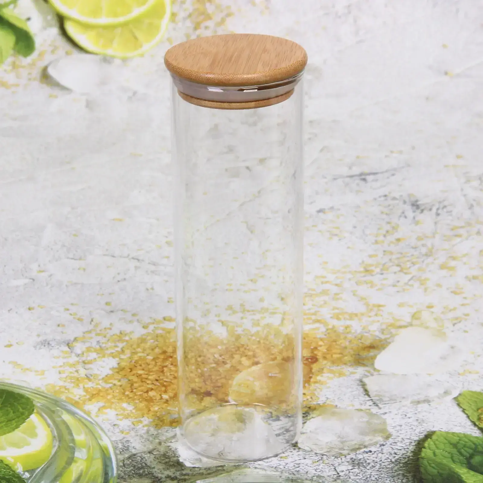 Размеры банки составляют 6,5 см в диаметре и 20 см в высоту, что делает ее компактной и удобной для хранения на полках или в шкафах. Изготовленная из качественного стекла и дерева, она гарантирует долговечность и надежность. Не упустите возможность сделать вашу кухню более организованной и стильной с помощью этой стеклянной банки!
