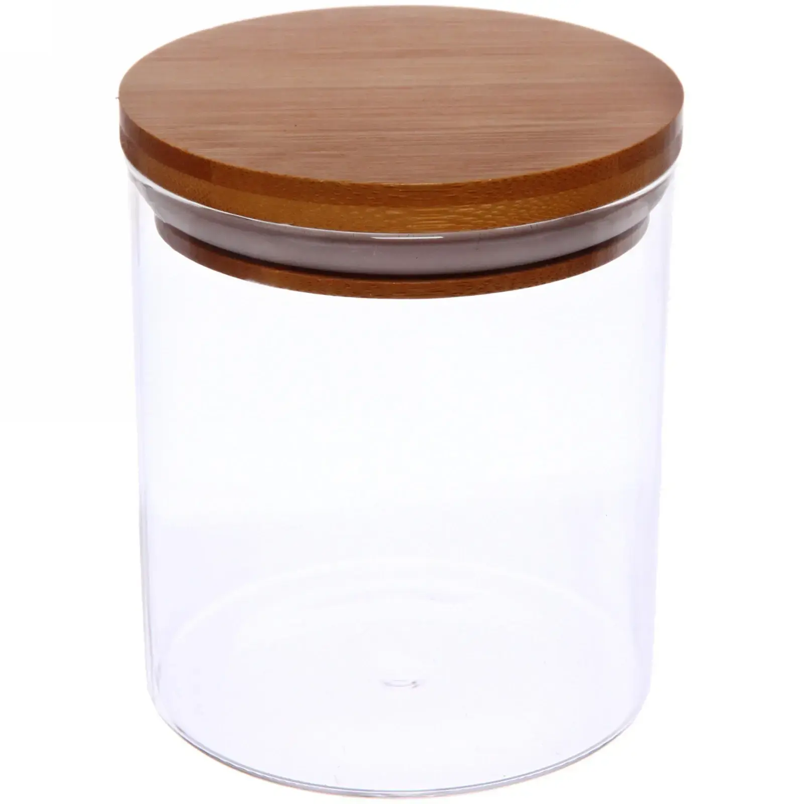 Банка для хранения продуктов «Хай-Тек», стеклянная 700 мл с бамбуковой крышкой, 11×12,5 см