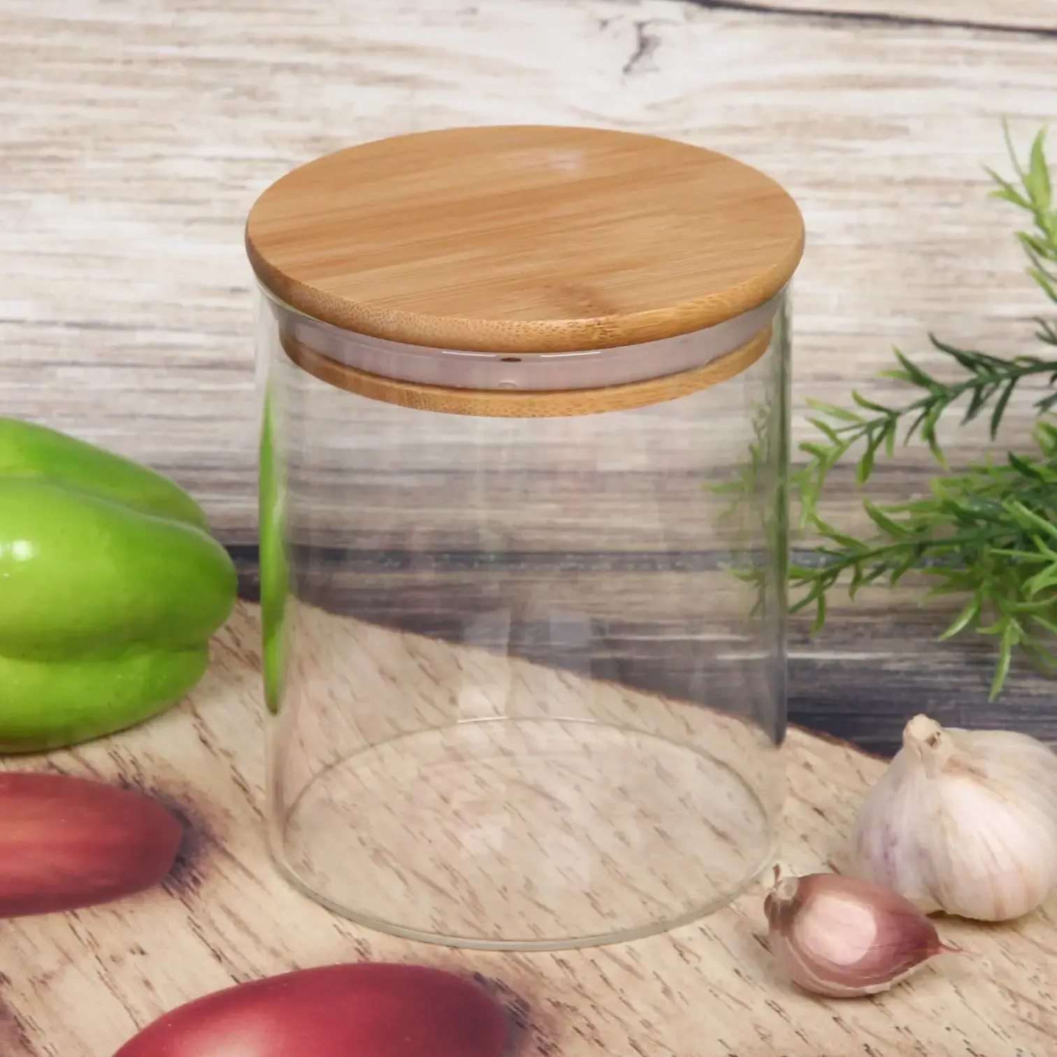 Стеклянная банка с бамбуковой крышкой сочетает экологичность, практичность и современную эстетику. Идеально подходит для сыпучих продуктов, специй, чая или косметических аксессуаров — сохраняет свежесть и органично вписывается в интерьер кухни.