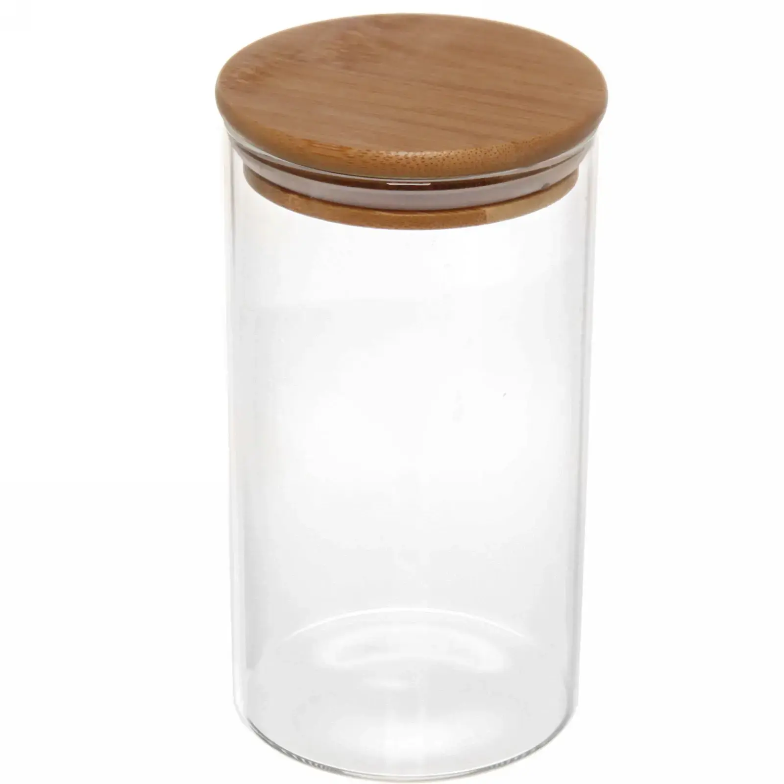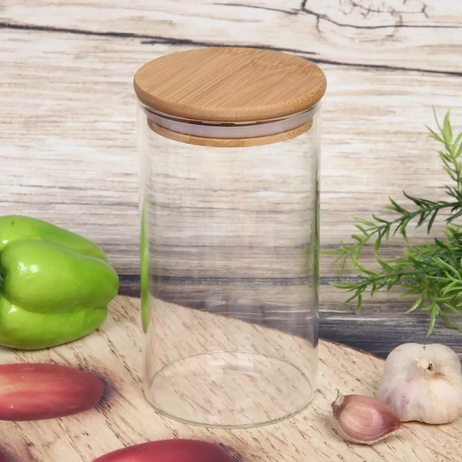 Банка для хранения «Хай-Тек», стеклянная, 700 мл, бамбуковая крышка, 8,5×15 см