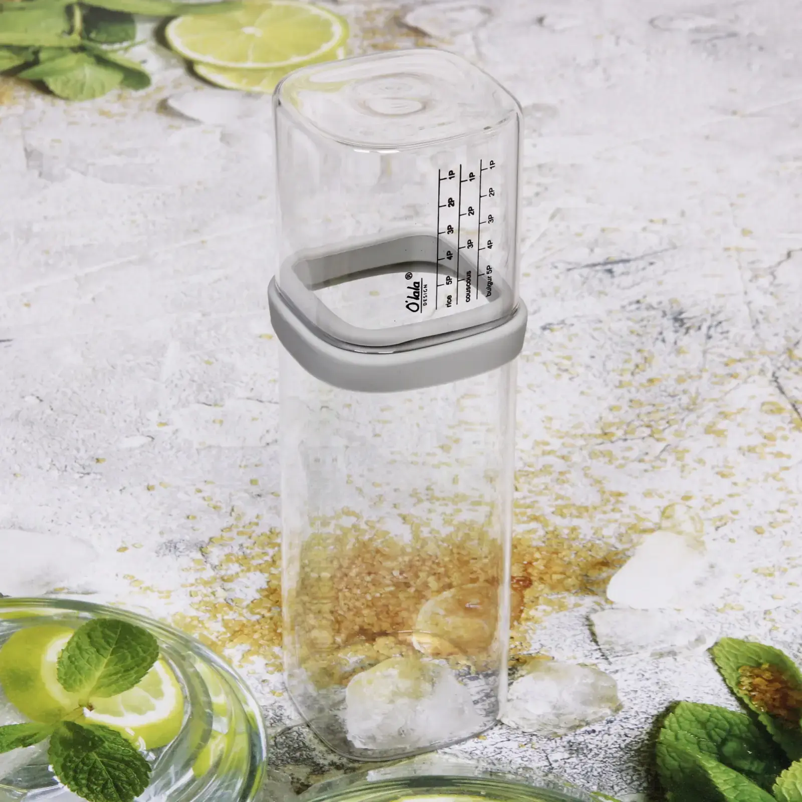 Идеально подходит для организации пространства в кухонном шкафу, хранения домашних заготовок или сыпучих продуктов. Чёткая градуировка в миллилитрах помогает точно соблюдать рецепты при готовке.