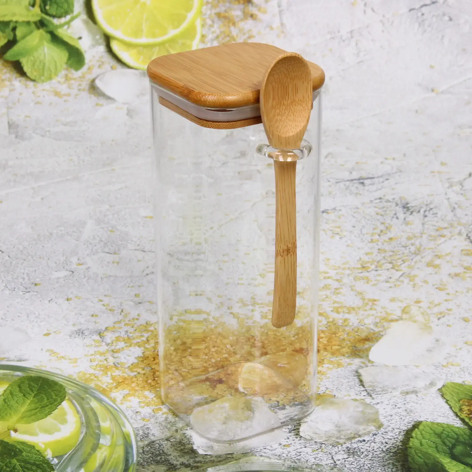 Эта стеклянная банка объёмом 850мл с бамбуковой крышкой и ложкой станет незаменимым помощником на вашей кухне. Она не только удобна в использовании, но и добавляет стильный акцент в интерьер. Благодаря квадратной форме 8*20см, она легко вписывается в любые пространства, позволяя экономить место и поддерживать порядок.