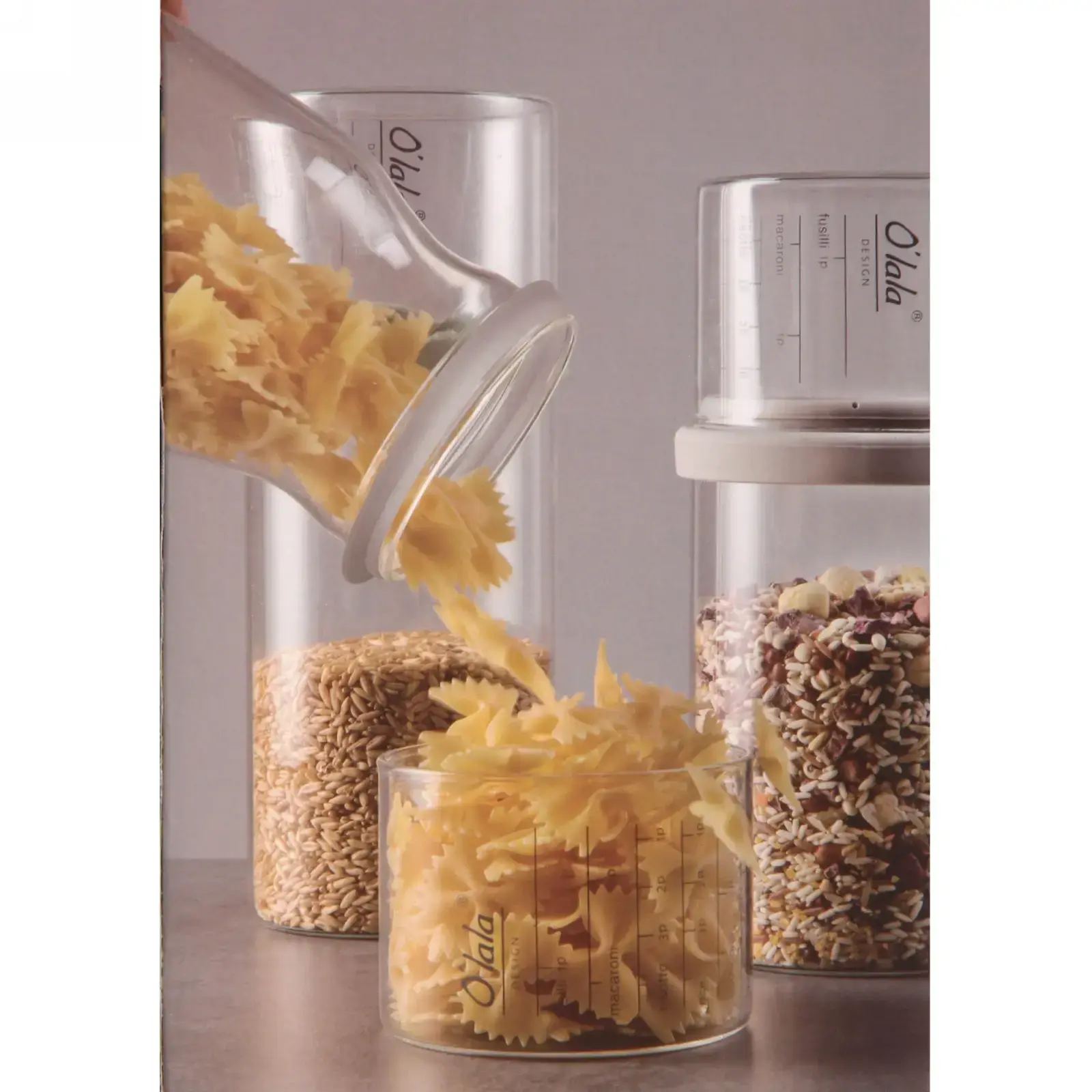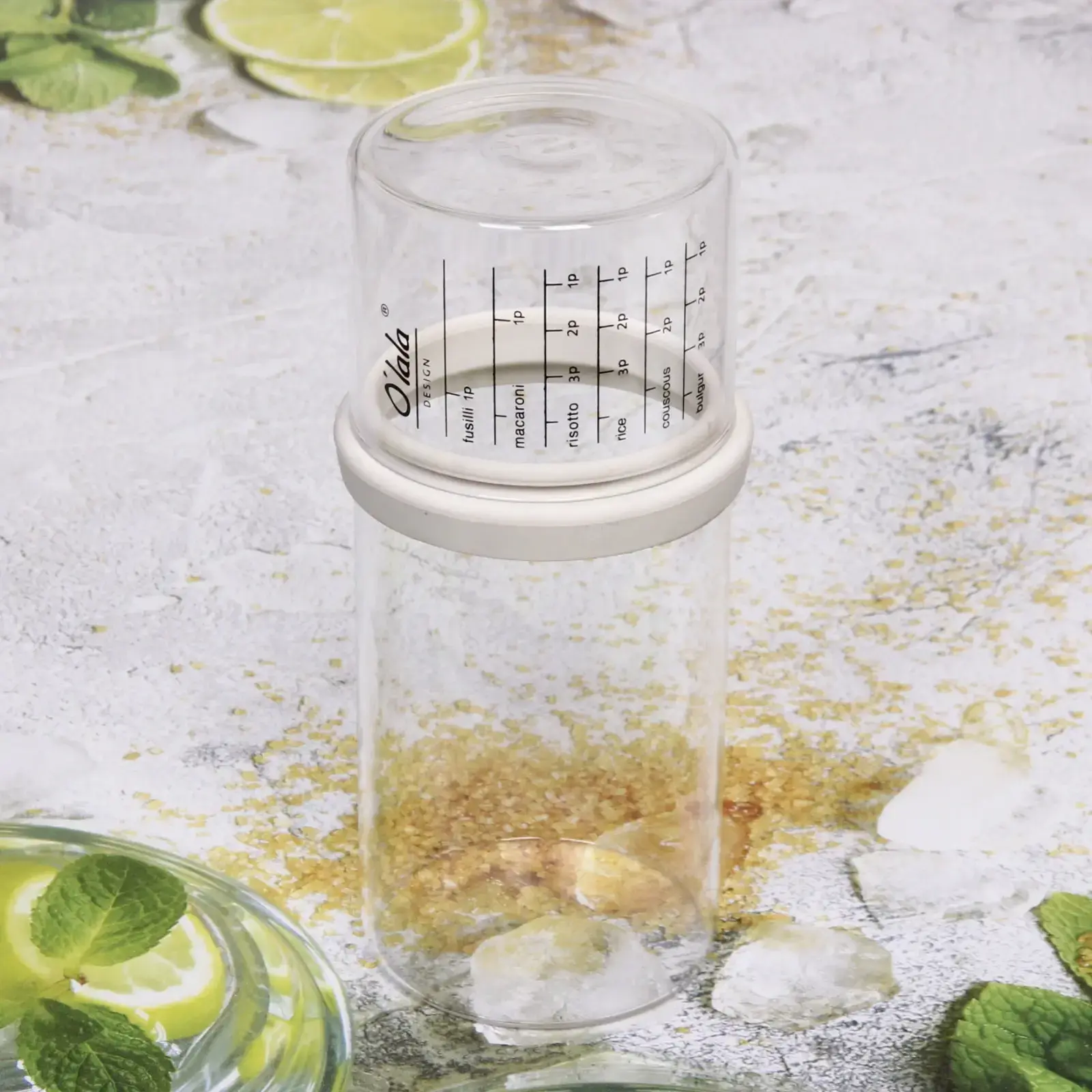Стеклянная банка с интегрированной мерной шкалой — ваш идеальный помощник для организации кухонного пространства. Герметичная конструкция сохраняет свежесть круп, макарон и специй, а прозрачные стенки позволяют быстро находить нужные ингредиенты.