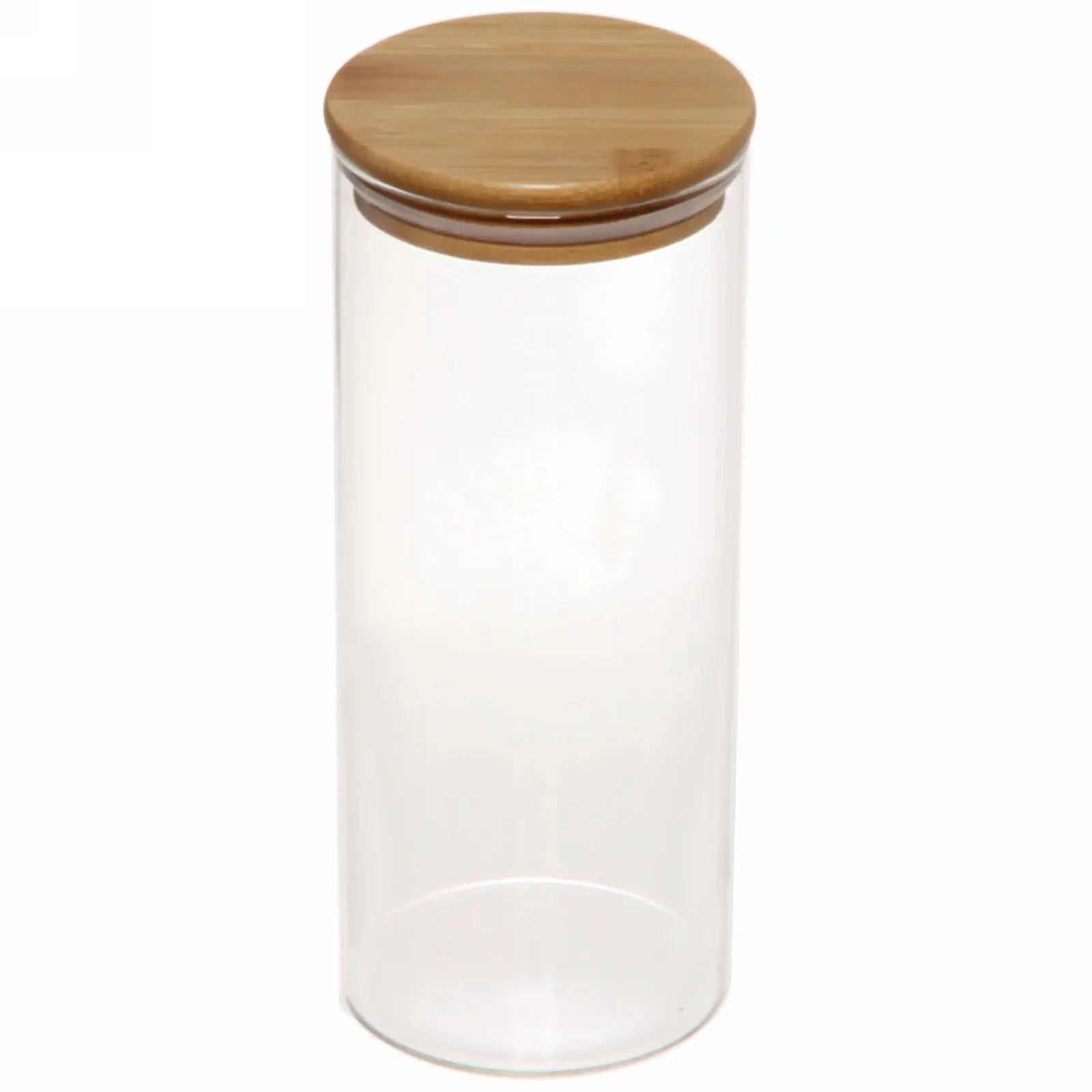 Банка стеклянная «Хай-Тек» с бамбуковой крышкой, герметичная, 950 мл, 8,5×20 см