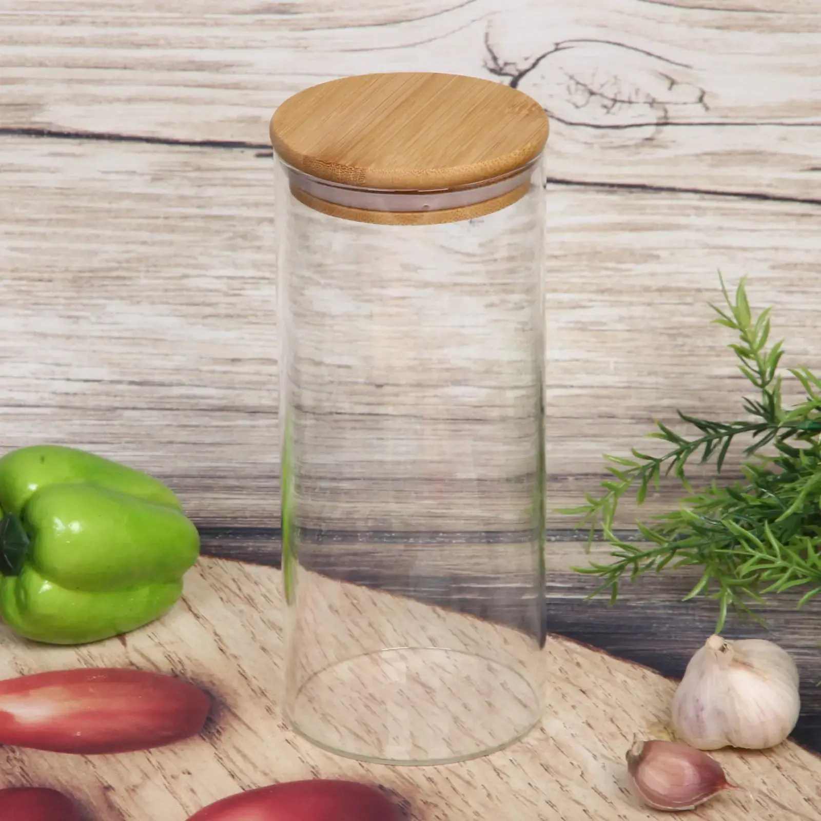 Банка стеклянная «Хай-Тек» с бамбуковой крышкой, герметичная, 950 мл, 8,5*20 см
