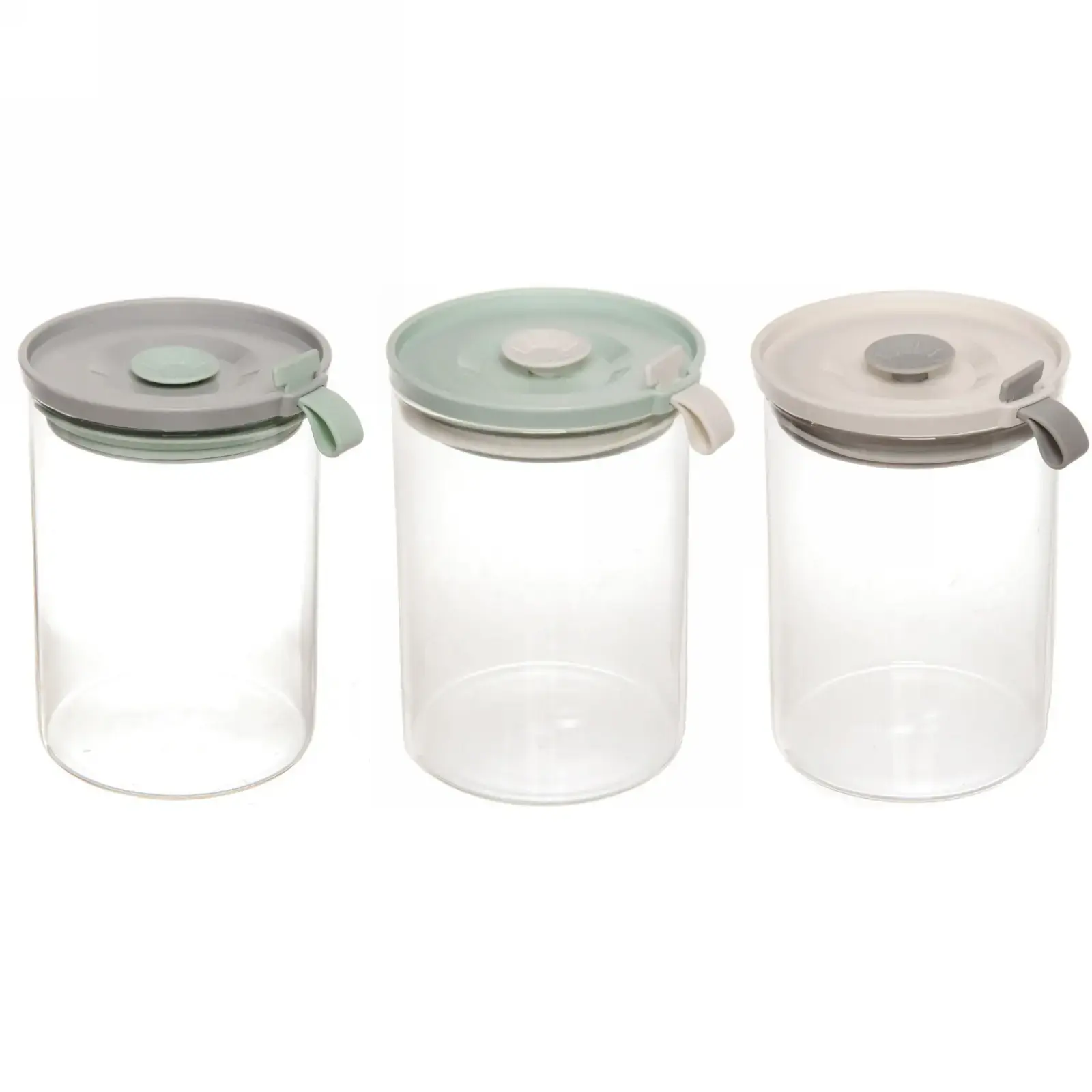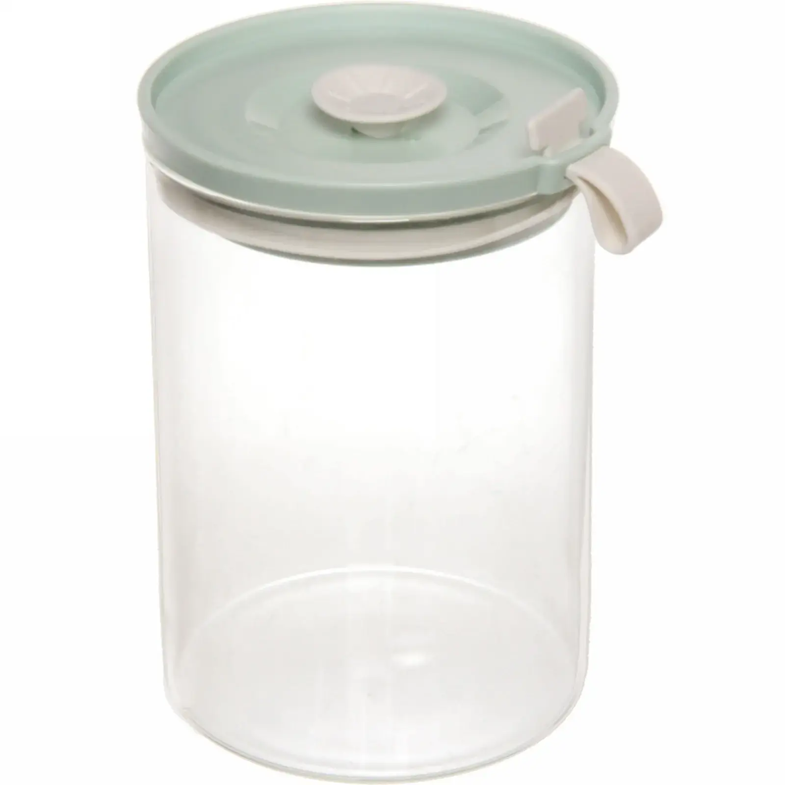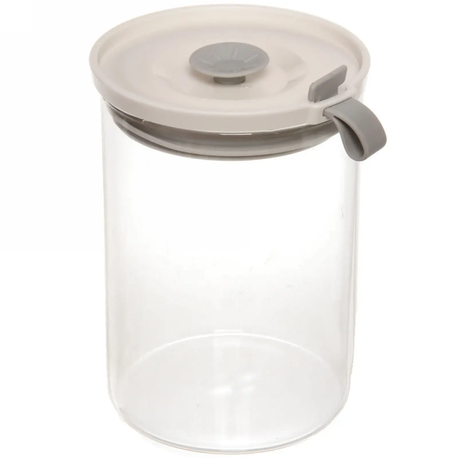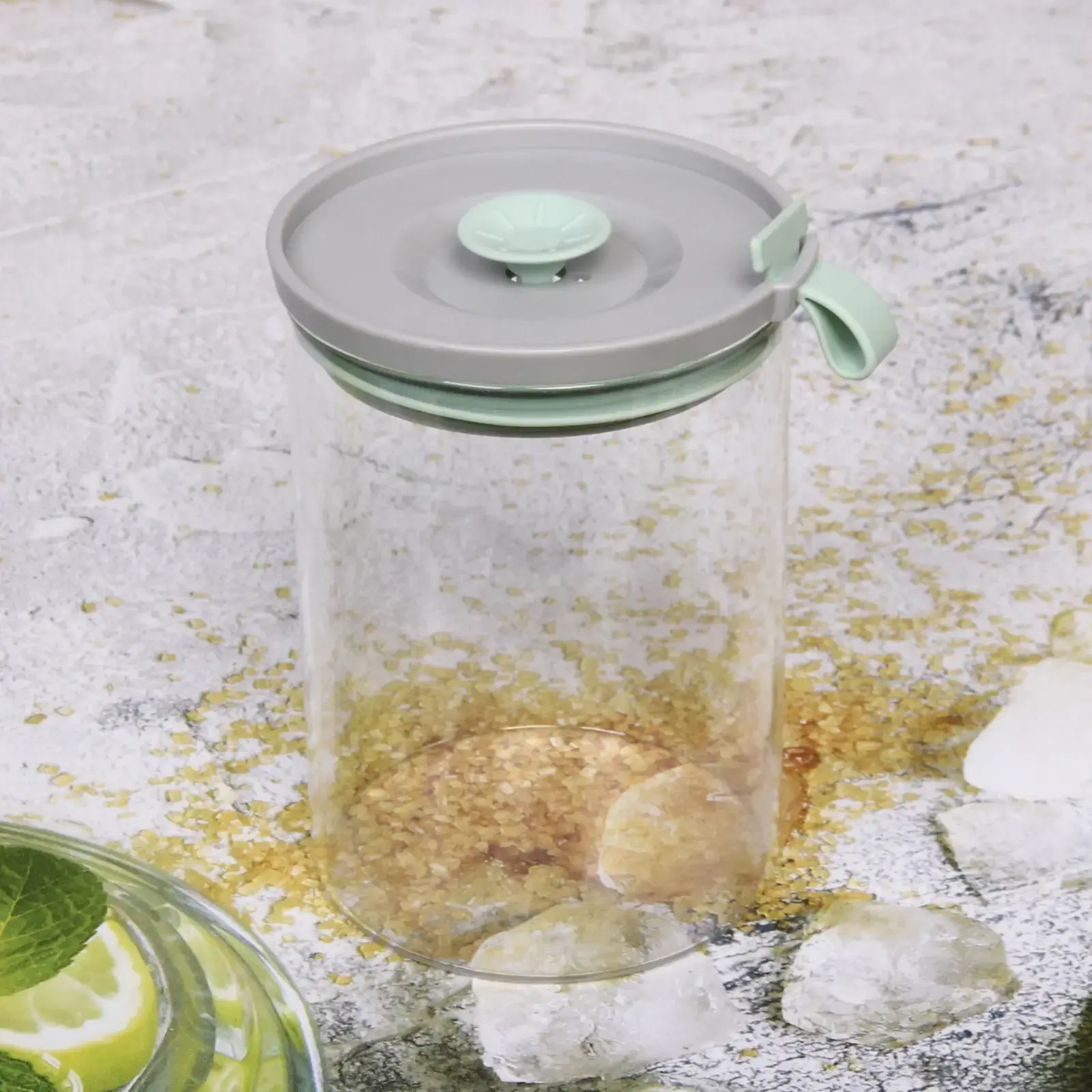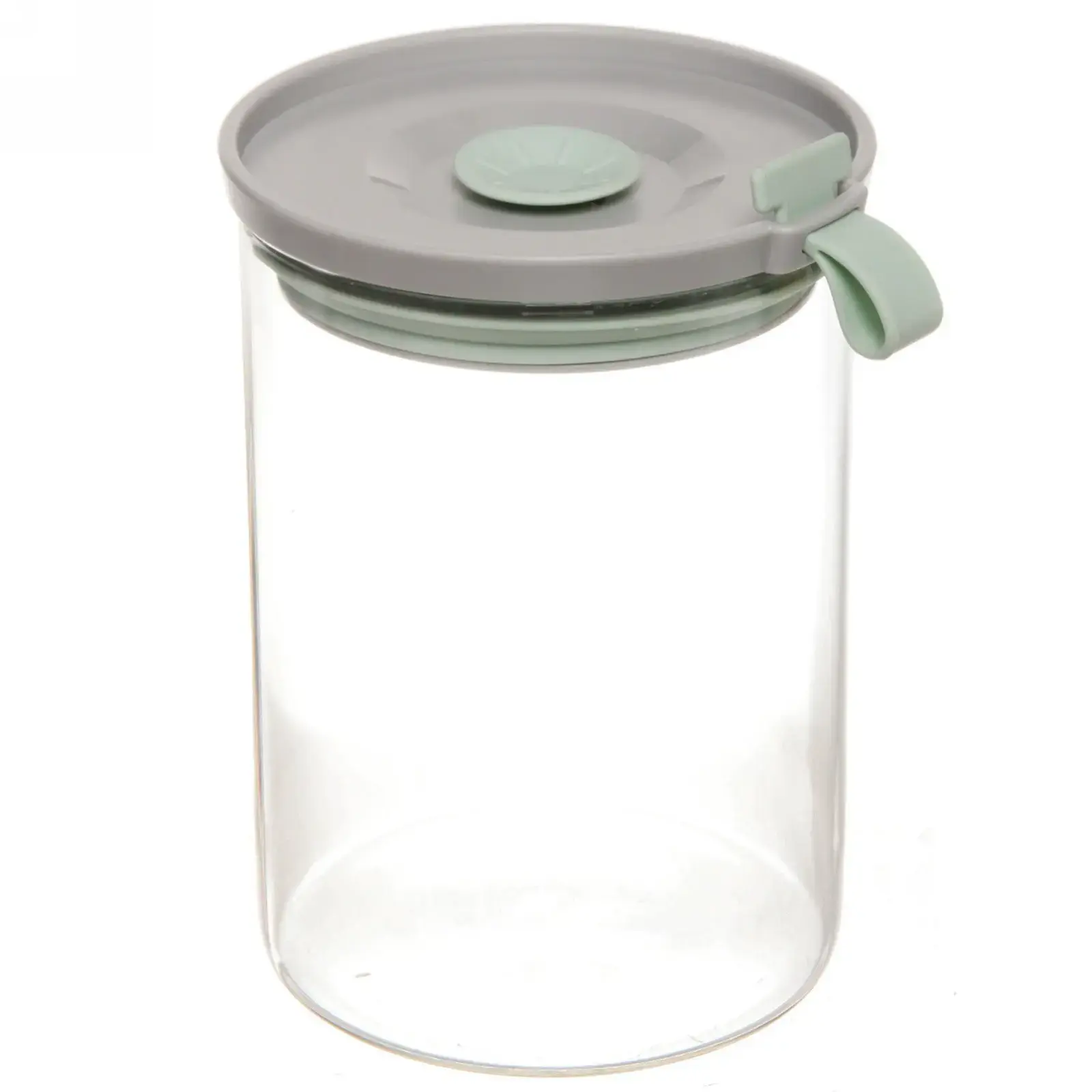 Банка для хранения «O'lala», стеклянная, 950 мл, герметичная крышка с кнопкой, серо-зеленая