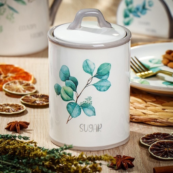 Банка для сахара с крышкой объемом 0.46 л — это идеальное решение для хранения ваших любимых сыпучих продуктов. Изготовленная из прочной керамики, она не только надежно сохраняет свежесть сахара, но и добавляет стильный акцент в интерьер вашей кухни. Благодаря оригинальному дизайну с изображением зелёных листьев и надписью «SUGAR», эта банка станет не только функциональным, но и эстетически привлекательным элементом вашего кухонного пространства.