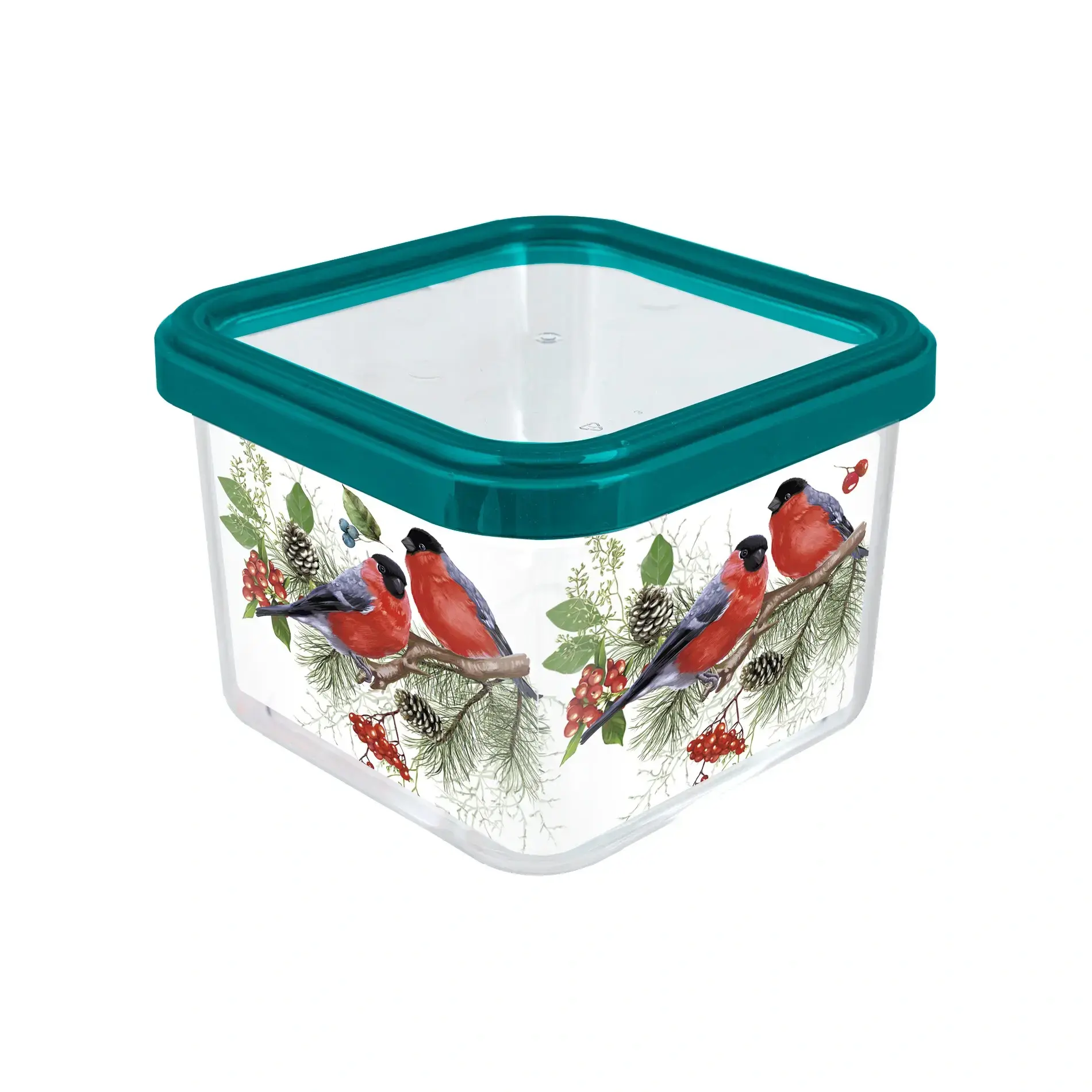 Банка для сыпучих продуктов 0,6л, пластик, дизайн 'Снегири', с крышкой цвета морской волны