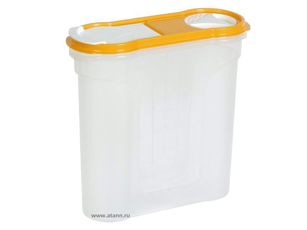 Преимущества: легкость, практичность, долговечность, компактность. Оранжевая крышка с ручкой обеспечивает удобство в использовании и простое открытие/закрытие. Благодаря прозрачному материалу, заполненность емкости видно без открытия. Современный дизайн идеально впишется в интерьер кухни, добавив практичности и стиля.