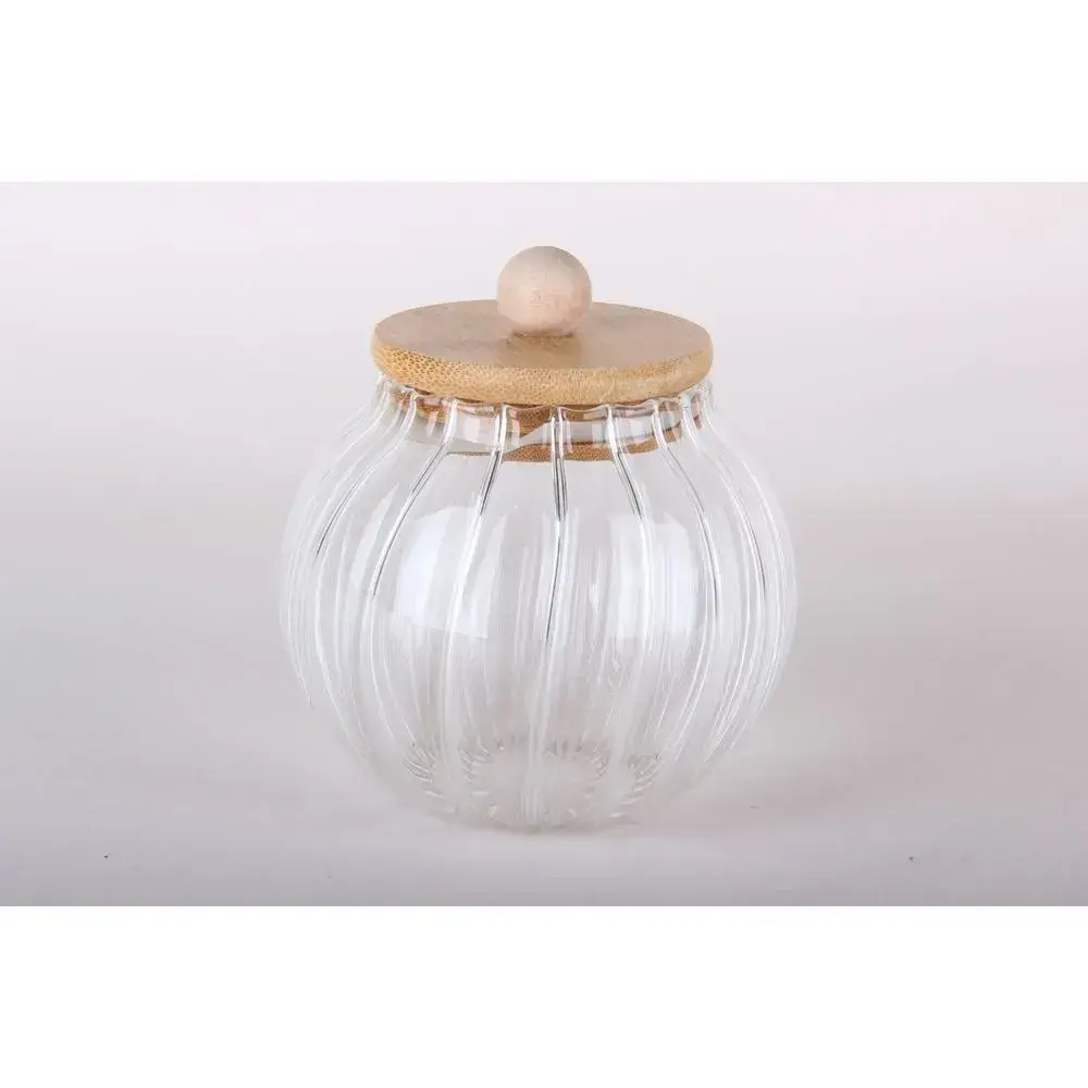 Стеклянная банка "Сфера" от бренда Коралл сочетает в себе практичность и элегантность. Сохраняйте крупы, специи и сухие завтраки свежими, одновременно украшая кухонные полки изысканным акцентом с рельефным декором.