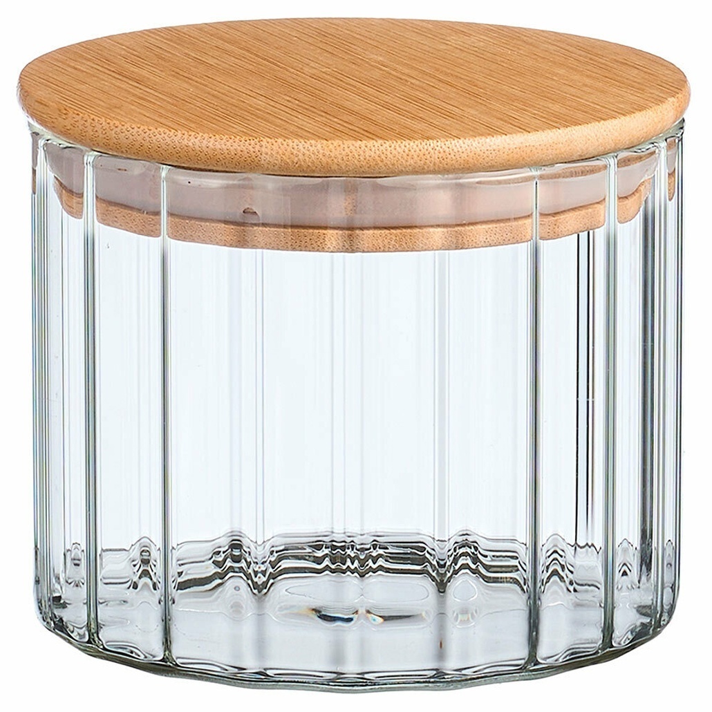 Объём: 540 мл; материал: прозрачное стекло; крышка: бамбук; цвет: прозрачный корпус, светло‑коричневая крышка. Компактные габариты позволяют разместить банку на любой полке без лишних усилий.