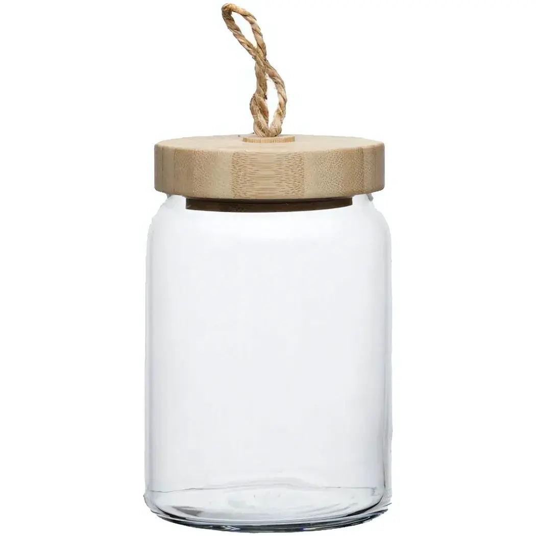 Банка предназначена для хранения различных сыпучих продуктов, таких как сахар, соль, крупы или специи. Благодаря прозрачному корпусу вы всегда сможете видеть содержимое, а деревянная крышка с веревочкой обеспечивает легкий доступ и удобство при использовании. Эта банка идеально подходит для тех, кто ценит порядок и стиль на кухне.