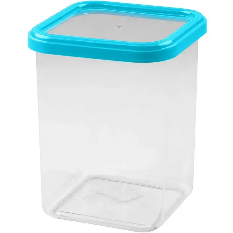 Квадратная банка для сыпучих продуктов сочетает практичность и эргономику — идеальное решение для компактного размещения на кухонных полках. Прозрачные стенки позволяют мгновенно оценивать остатки продуктов, а плотная голубая крышка гарантирует защиту от влаги и посторонних запахов.