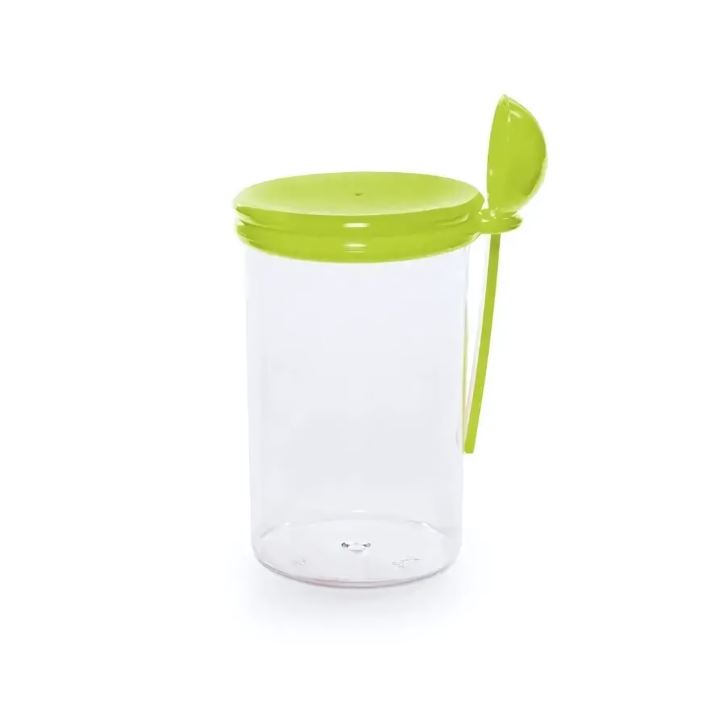 Банка для сыпучих продуктов с ложкой, 0,75л, пластик, герметичная крышка, зеленая