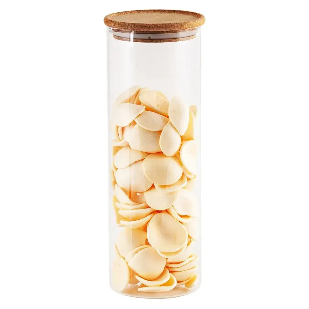 Благодаря продуманной конструкции и качественным материалам, банка обеспечивает надежное хранение продуктов. Стекло устойчиво к царапинам и не впитывает запахи, а деревянная крышка создает герметичное закрытие.