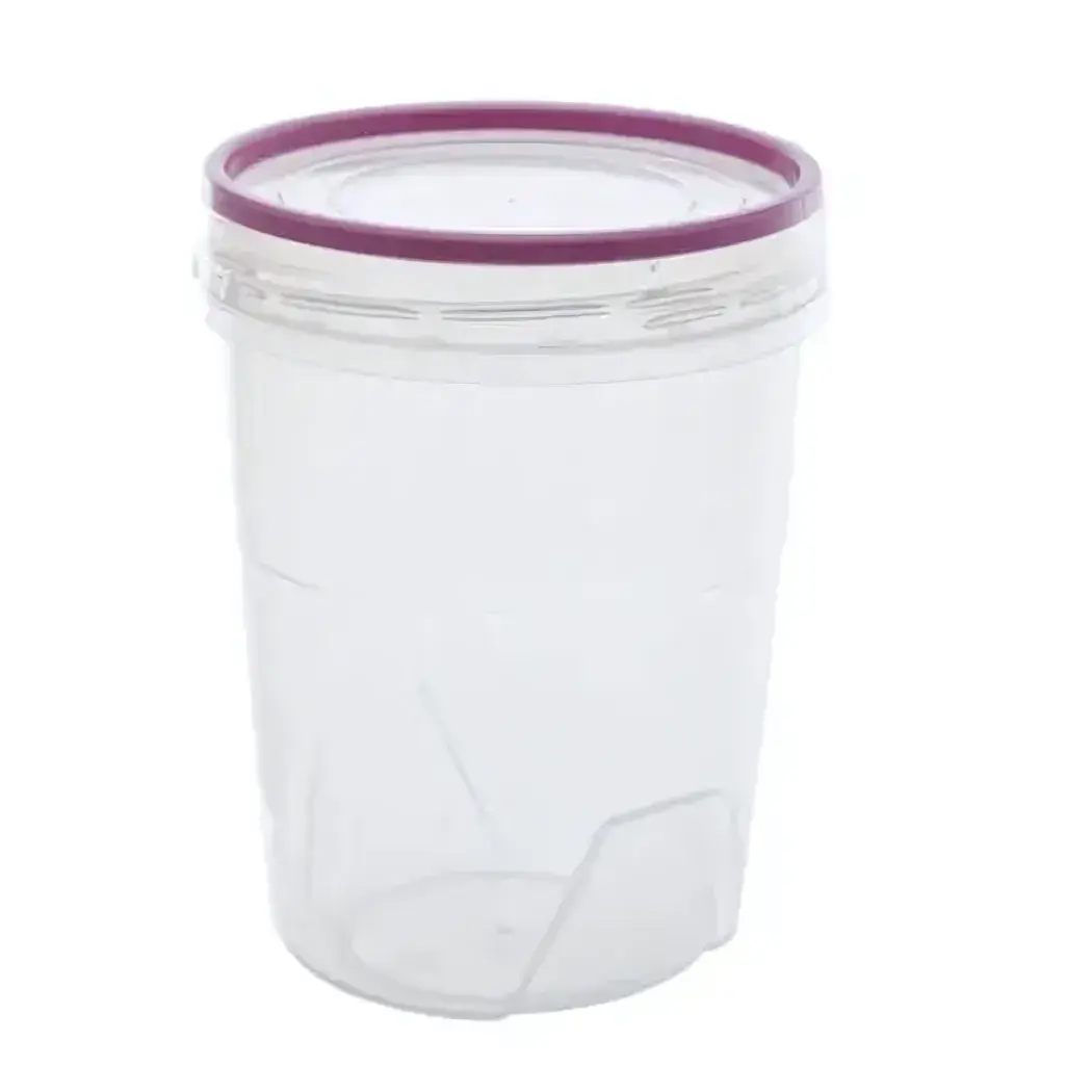 Цилиндрическая форма и прозрачные стенки позволяют быстро находить нужный продукт и контролировать остатки. Усиленный ободок крышки гарантирует плотное прилегание, а эргономичный дизайн обеспечивает комфортный захват даже мокрыми руками.