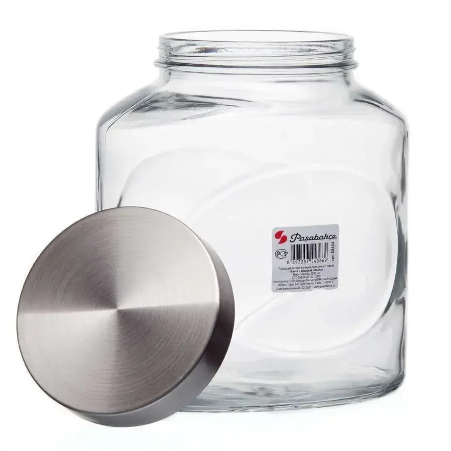 Изготовлена из пищевого прозрачного пластика, соответствует требованиям безопасности. Металлическая крышка с антикоррозийным покрытием предотвращает появление ржавчины. Диаметр горловины 12 см позволяет использовать мерные стаканы для наполнения.