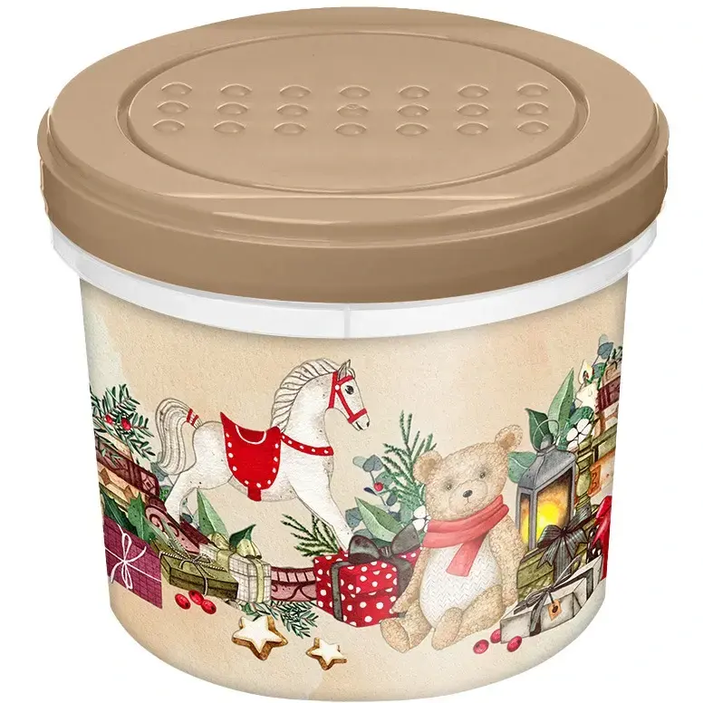 Эта банка предназначена для безопасного хранения пищевых продуктов, она подходит для использования дома, на работе и в поездках. Благодаря надежной закручивающейся крышке и устойчивому к внешним воздействиям рисунку, она обеспечивает герметичность и долговечность, а дизайн с зимней тематикой делает её привлекательной для праздничных и повседневных целей.
