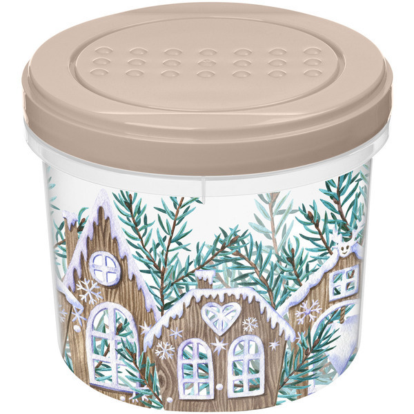 Изготавливается из перерабатываемого безопасного пищевого полипропилена, не содержит бисфенола А, что делает ее безопасной для хранения продуктов. Объем банки составляет 0,7 литра, а бежевый цвет и зимний декор с изображением деревянных домиков и еловых веток придают ей особый шарм. Эта банка станет отличным дополнением к вашему кухонному инвентарю и поможет организовать пространство.