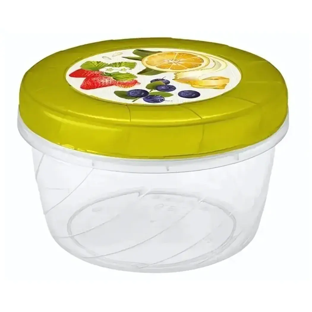 Банка герметичная 0,6 л с декором 'Фрукты', прозрачный пластик, зеленая крышка