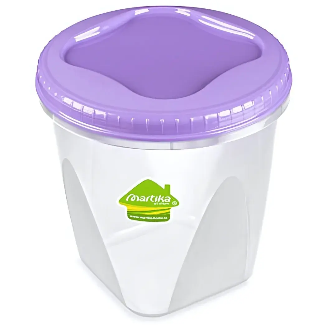 Банка идеально подходит для хранения различных сыпучих продуктов, таких как крупы, сахар, мука и даже специи. Она также может быть использована для хранения мелочей в быту, что делает ее универсальным решением для организации пространства. Прозрачные стенки позволяют легко видеть содержимое, а фиолетовая крышка добавляет стильный акцент на вашей кухне.
