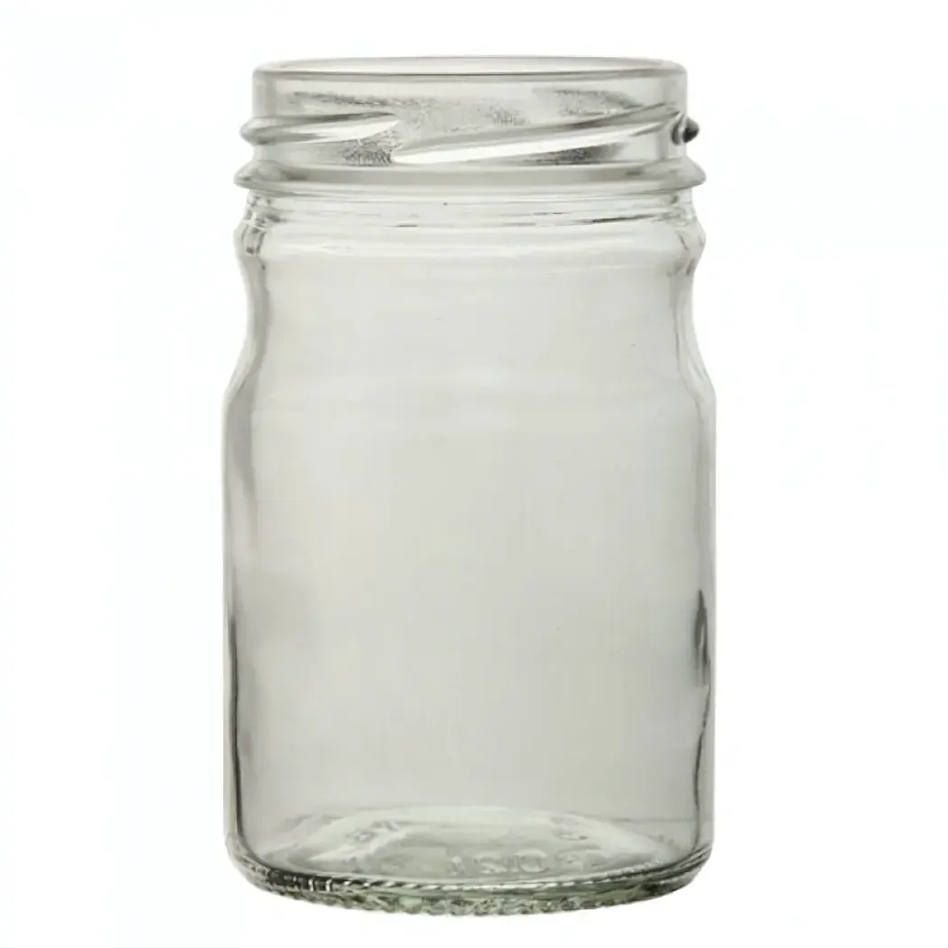 Высота изделия — 9.5 см, диаметр горлышка — 6 см. Совместима со стандартными металлическими и пластиковыми крышками. Благодаря прозрачным стенкам вы всегда видите содержимое, а компактные габариты позволяют экономить место на полках.