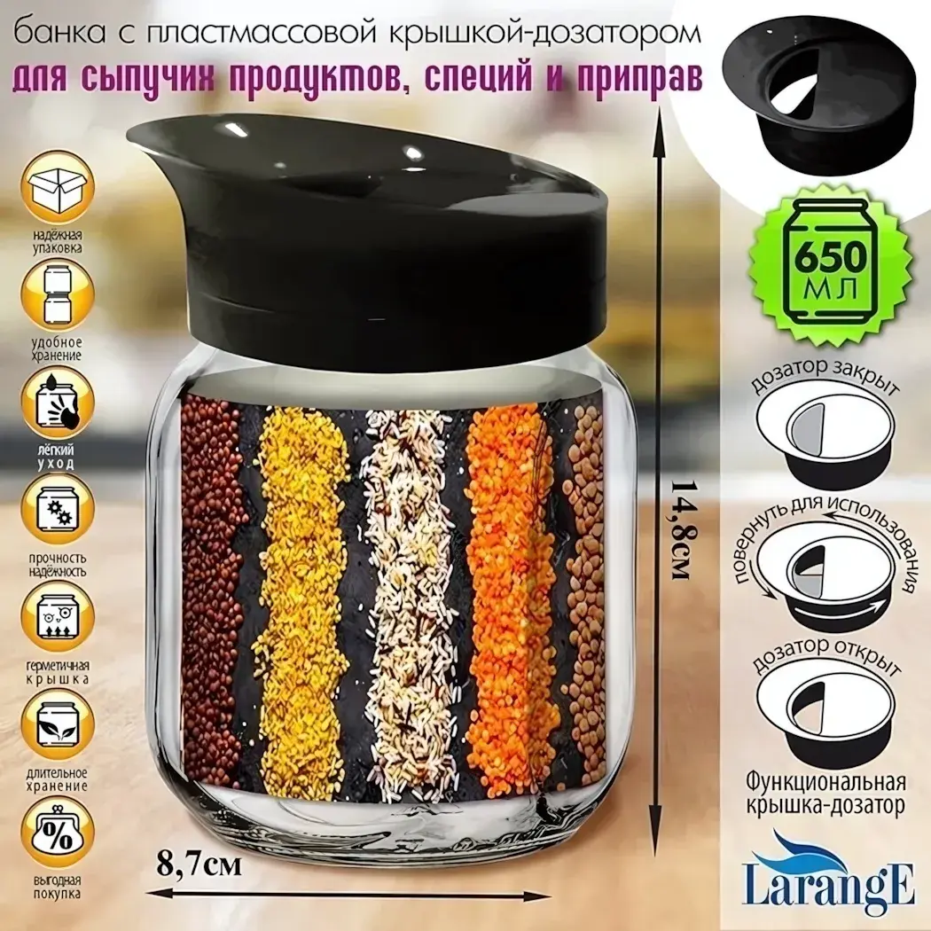 Храните приправы, крупы и другие сыпучие продукты в надежной стеклянной банке с удобным дозатором. Эргономичный дизайн и практичность делают ее идеальным выбором для любой кухни.