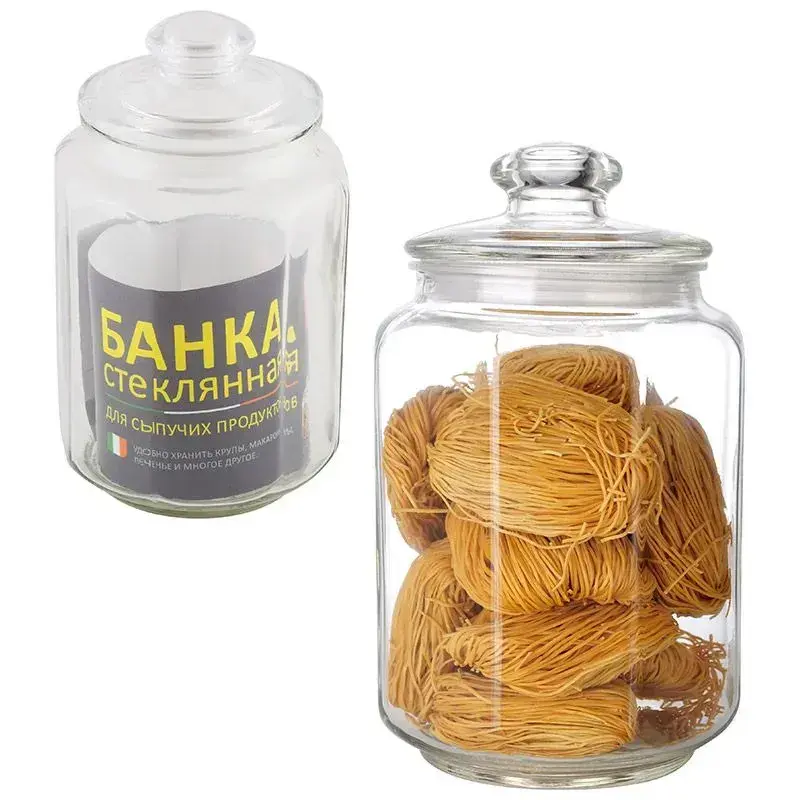 Совет: используйте несколько банок для создания стильной системы хранения на открытых полках кухни. Стеклянная поверхность гармонично сочетается с любым интерьерным стилем.