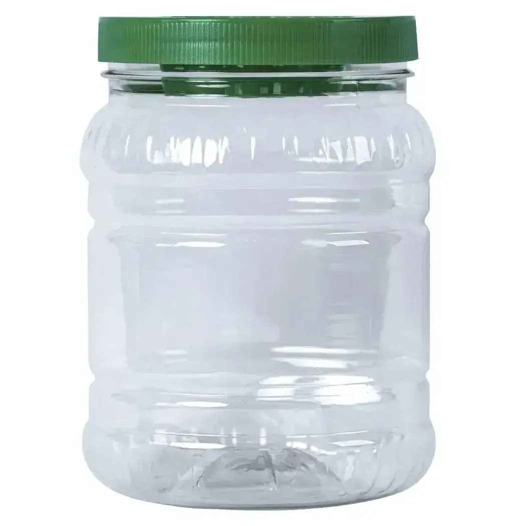 Банка универсальная 1,5л с герметичной крышкой, пластик, прозрачная, зеленая крышка