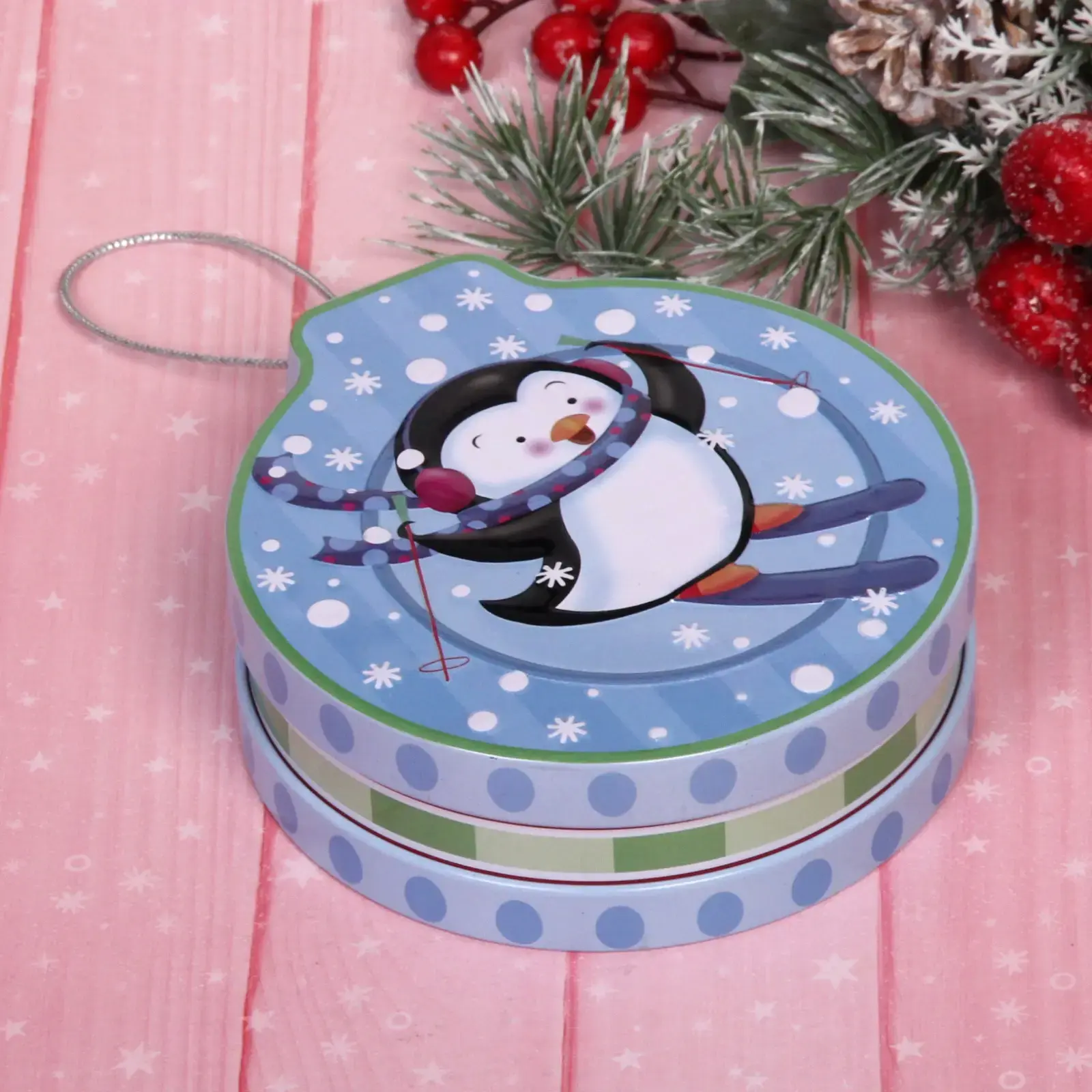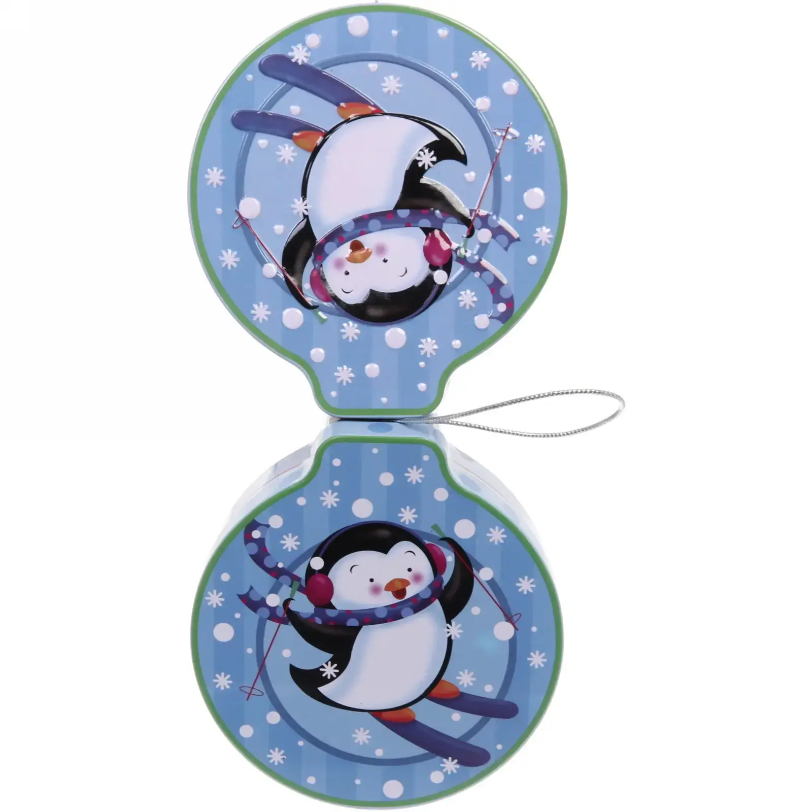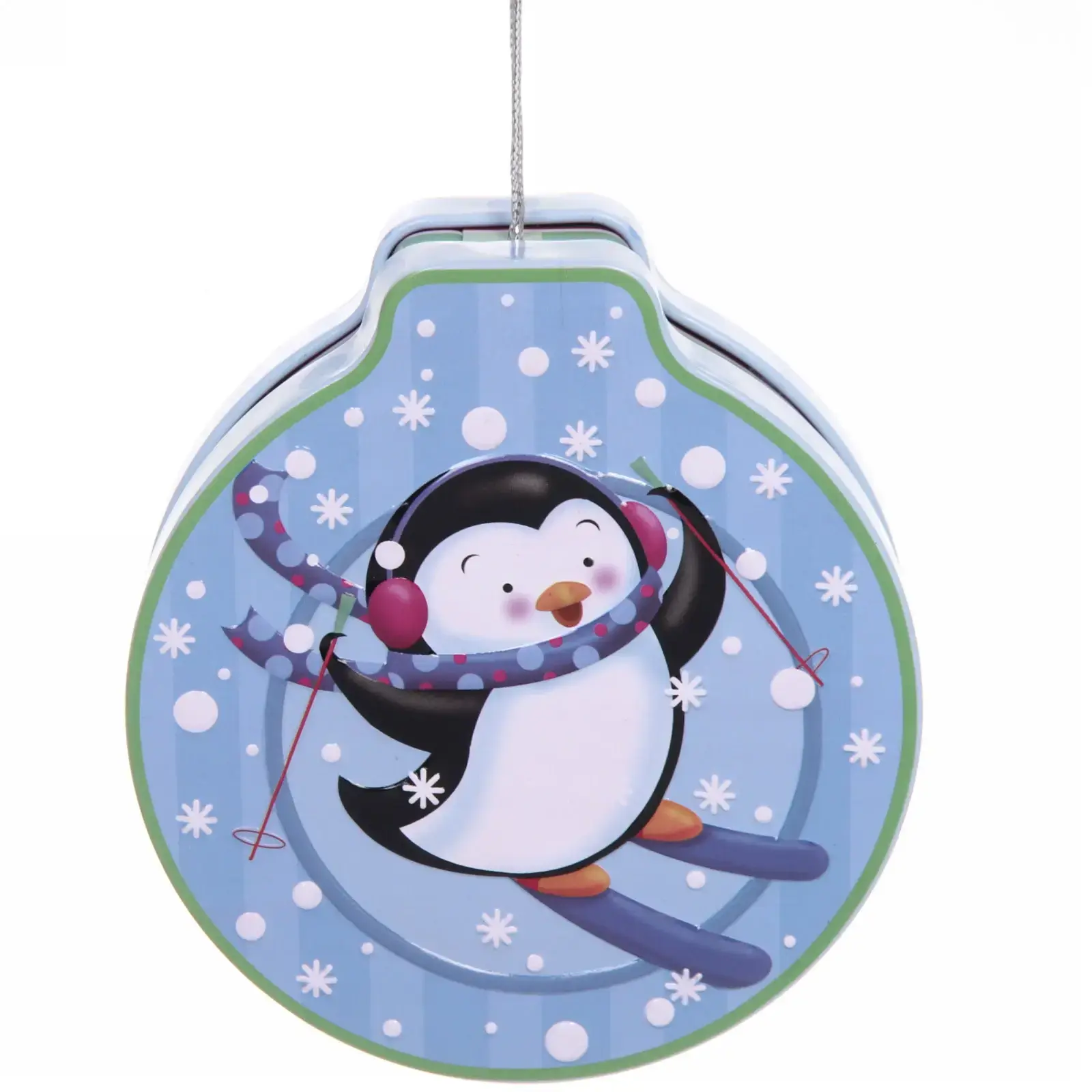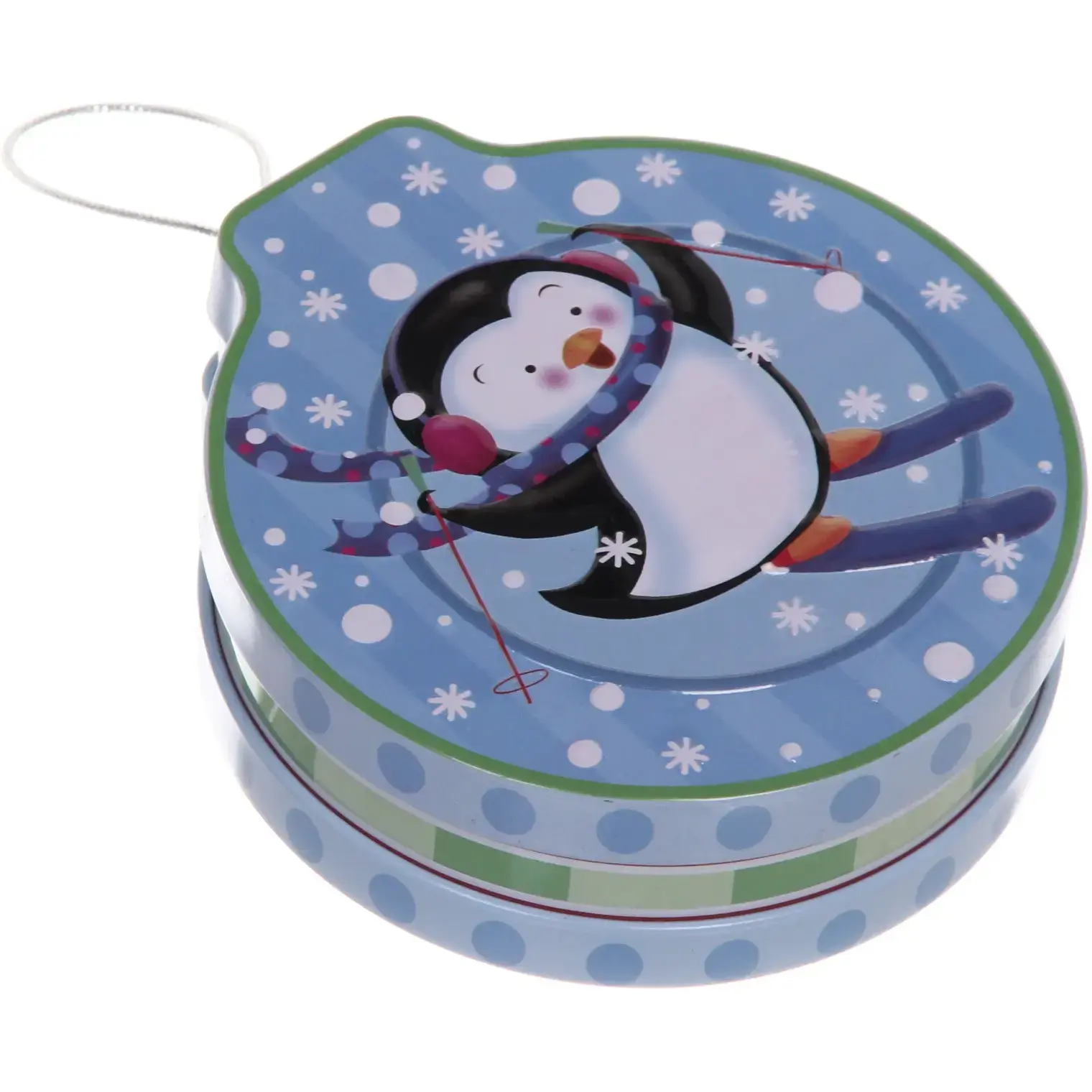 Эта яркая жестяная банка с изображением пингвина, катающегося на лыжах, станет отличным вариантом для упаковки подарков. Она не только привлекает внимание своим дизайном, но и обеспечивает надежное хранение конфет, леденцов и других мелких сюрпризов. Порадуйте своих близких оригинальным знаком внимания, который создаст атмосферу праздника.