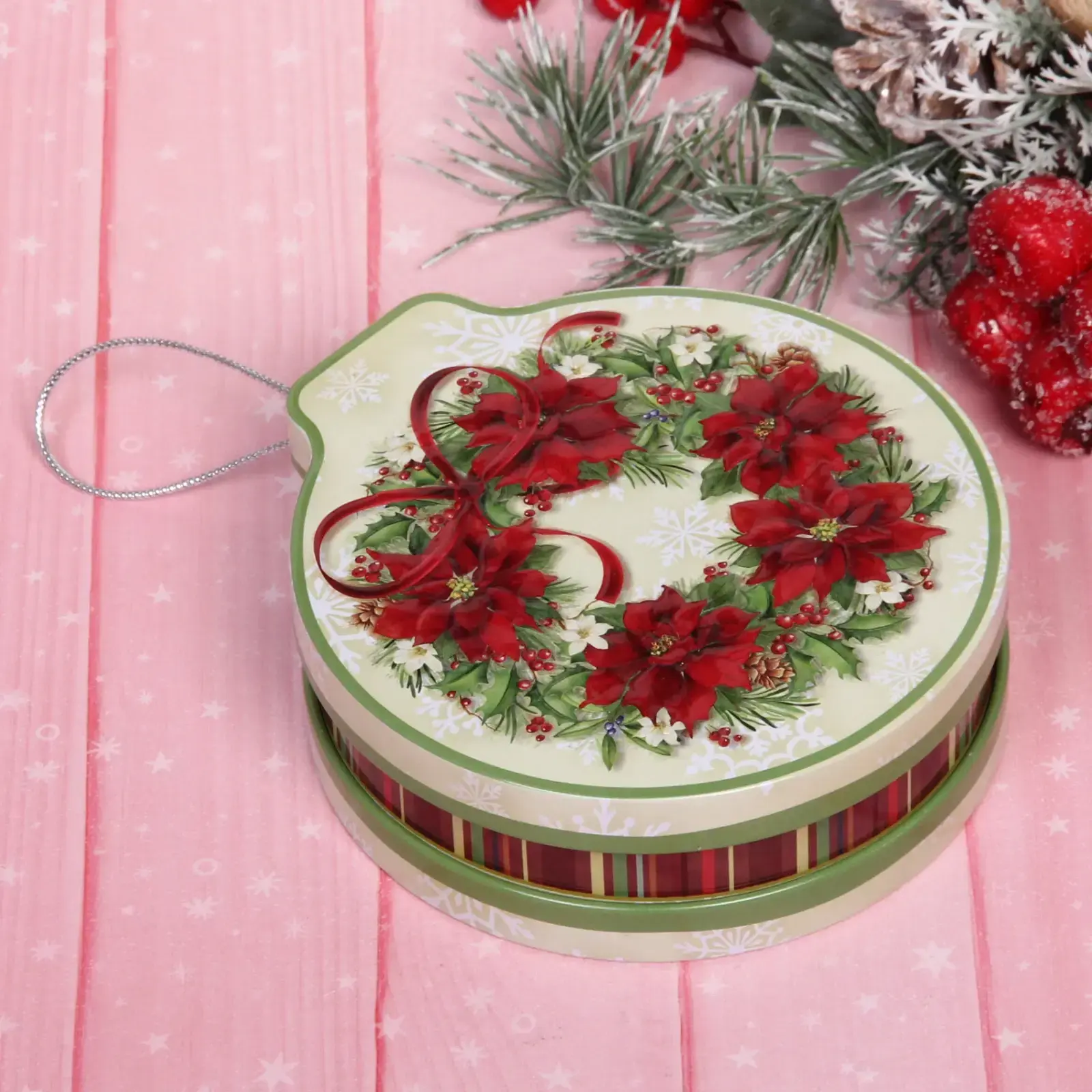 Праздничная жестяная банка «Рождественский венок»