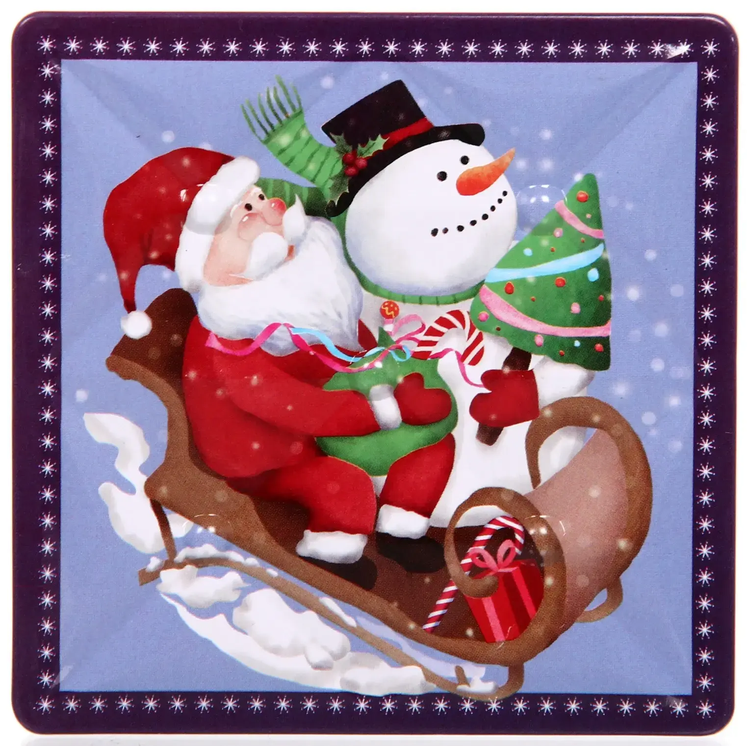 Эта жестяная банка с изображением «Деда Мороза и снеговика» станет отличным выбором для упаковки новогодних подарков. Она не только практична, но и добавляет атмосферу праздника, что делает её идеальным вариантом для подарков на Новый год. Упаковка в такой банке станет приятным сюрпризом для ваших близких и друзей.