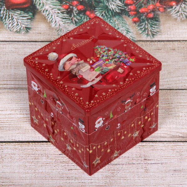 Эта яркая жестяная банка станет отличным решением для упаковки подарков на Новый год. Она не только удобна, но и добавляет праздничного настроения благодаря своему дизайну с изображением Санта-Клауса и ёлки. Порадуйте своих близких, упаковывая в неё сладости, леденцы или другие небольшие подарки. Такой знак внимания станет приятным сюрпризом для друзей и родных.