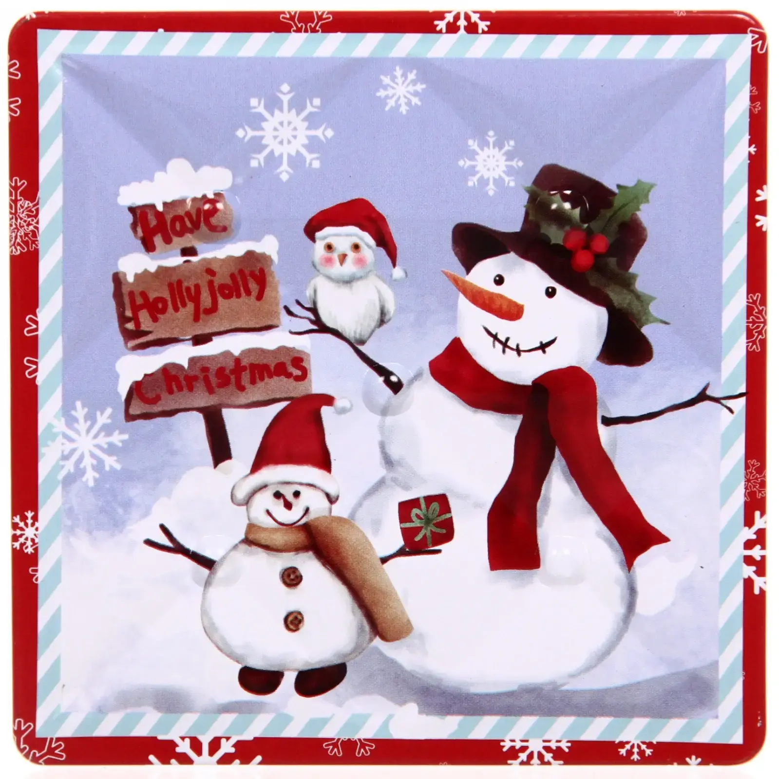 Эта яркая жестяная банка станет отличным решением для упаковки сладостей и небольших подарков на Новый год. С ее помощью вы сможете создать атмосферу праздника и порадовать близких оригинальным знаком внимания. Яркий дизайн с изображением снеговиков и снежинок добавит волшебства в ваш новогодний декор.