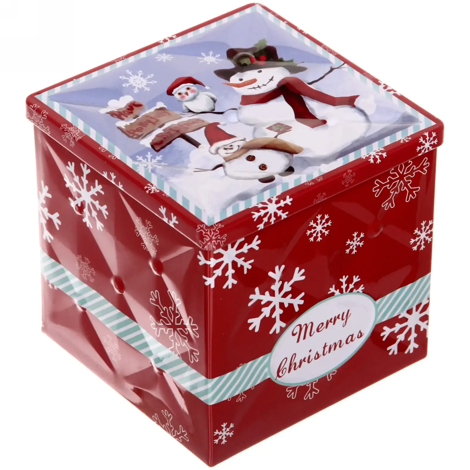 Размеры банки составляют 9х9х9 см, а материал — жестяной металл, что гарантирует ее прочность и устойчивость к повреждениям. Яркий красный цвет с белыми снежинками и изображением снеговиков делает ее идеальной для новогодних праздников. Не упустите возможность добавить эту банку в свою коллекцию новогодних аксессуаров!