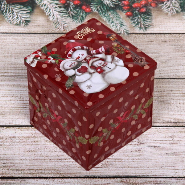 Эта яркая жестяная банка станет отличным решением для упаковки подарков и сладостей на Новый год. С её помощью вы сможете создать атмосферу праздника и порадовать близких оригинальным знаком внимания. Стильный дизайн с изображением снеговиков и надписью «Merry Christmas» добавит уюта и радости в ваш новогодний декор.