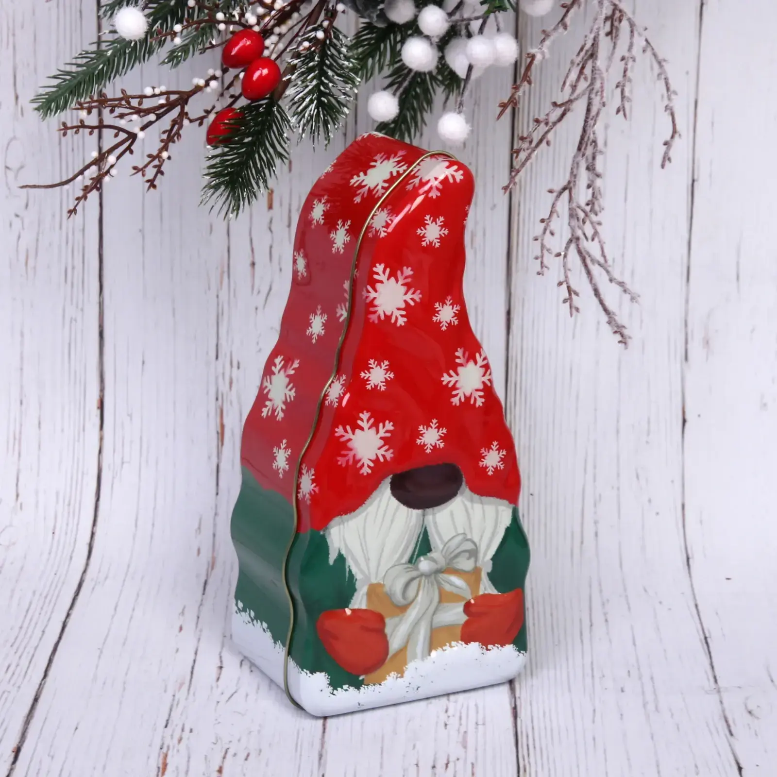 Выбирая банку «Гномик с подарком», вы получаете не только красивую упаковку, но и практичное решение для хранения сладостей. Жестяной материал обеспечивает надежность и долговечность, а яркий дизайн с красной шляпой и белыми снежинками создаёт праздничное настроение. Это отличный способ выразить внимание и заботу к вашим близким.