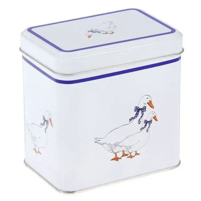Банка жестяная декоративная для кухни с рисунком уточек, бело-синяя, 0.6 л, квадратная