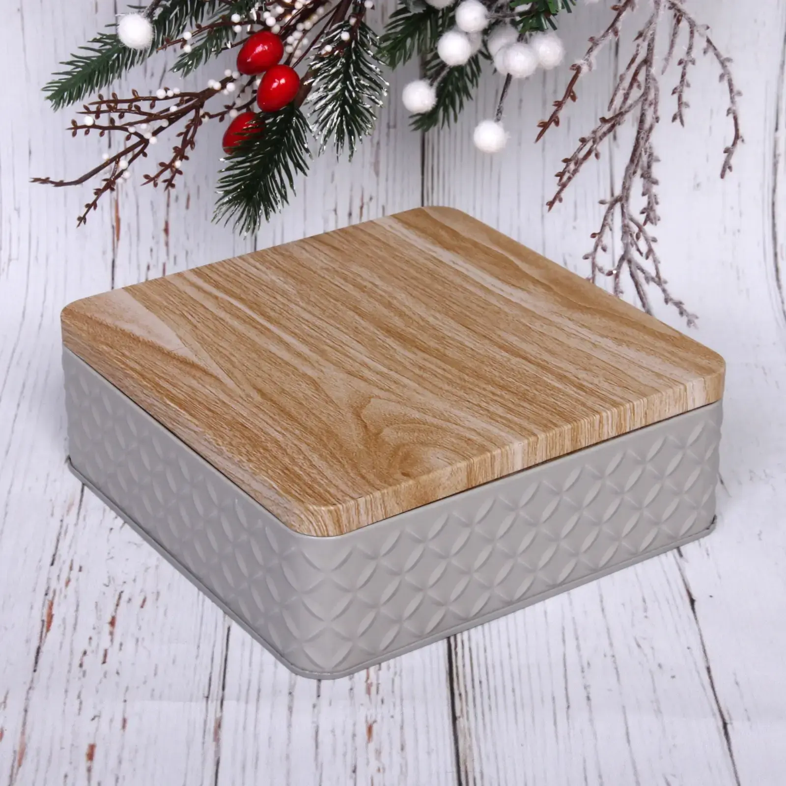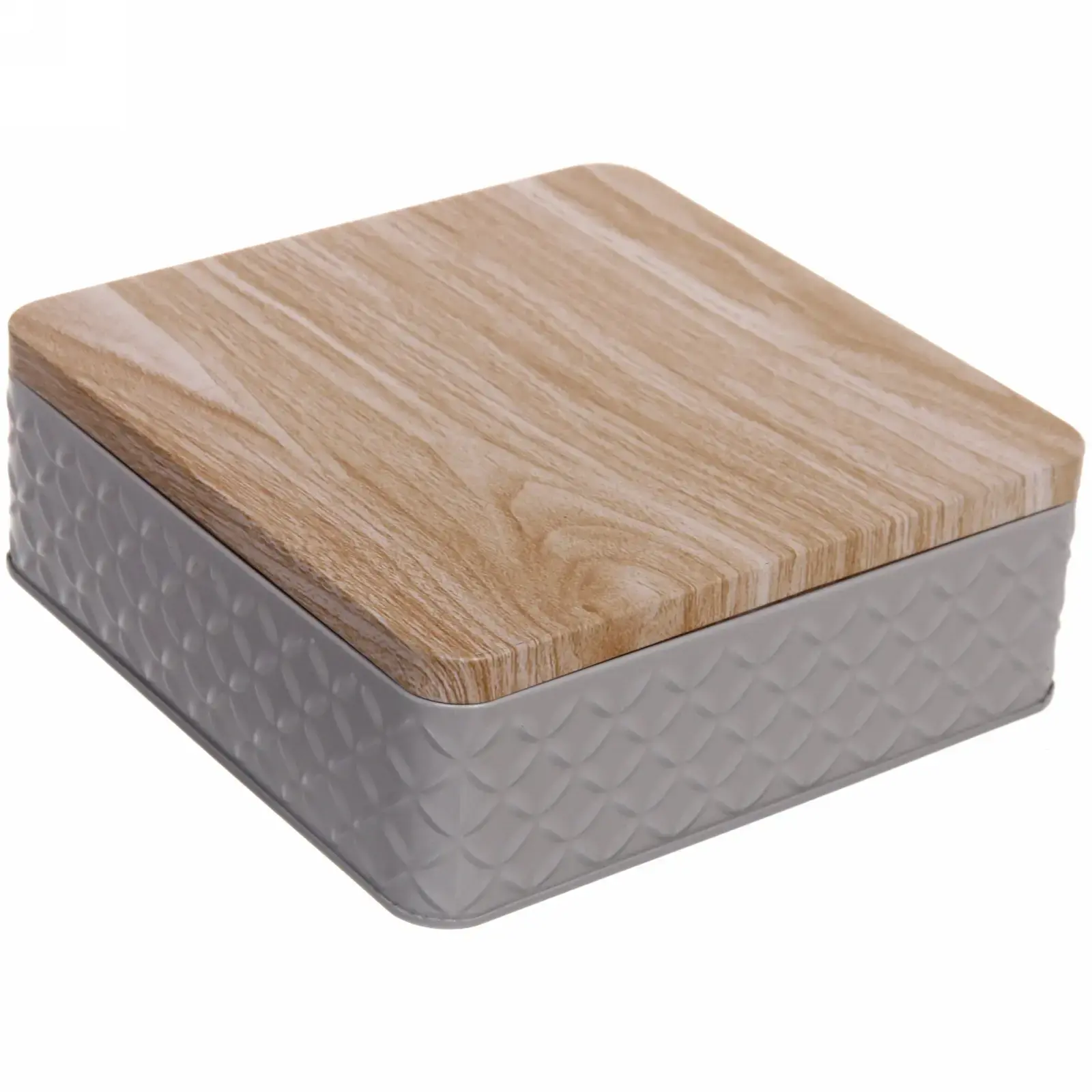 Жестяная банка «Kitchen romance» 1500мл, 17x17x6см, серый цвет, крышка под дерево