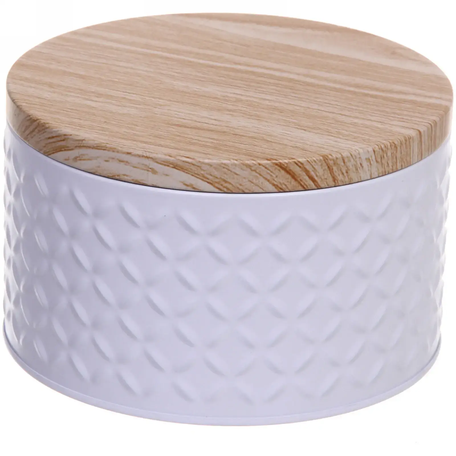 Выбирая эту банку, вы получаете не только качественный продукт, но и возможность сэкономить время на поиски нужных вещей. Плотно прилегающая крышка обеспечивает надежное хранение, а материал, имитирующий древесину, добавляет изысканности. Жестяная конструкция гарантирует долговечность и практичность в использовании.
