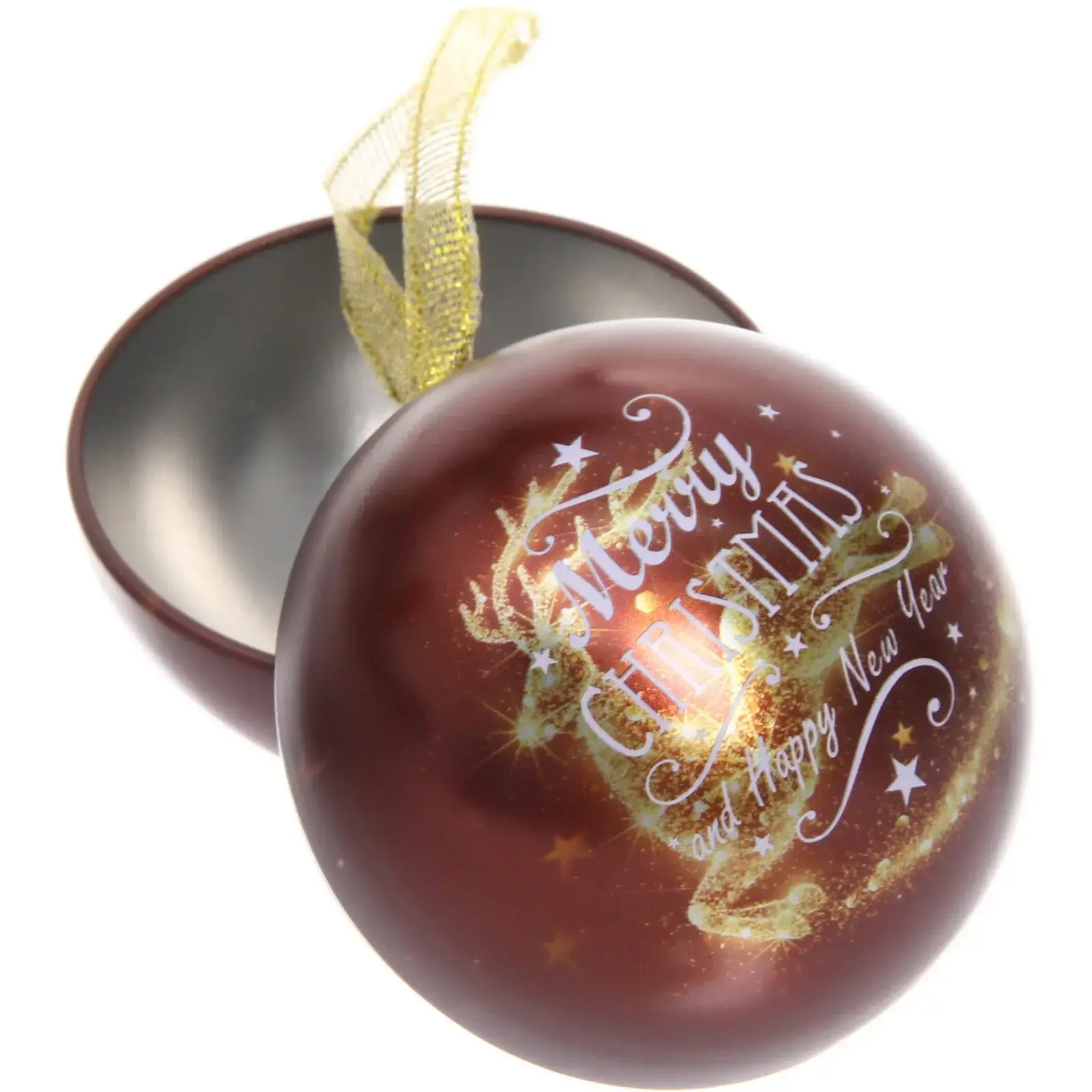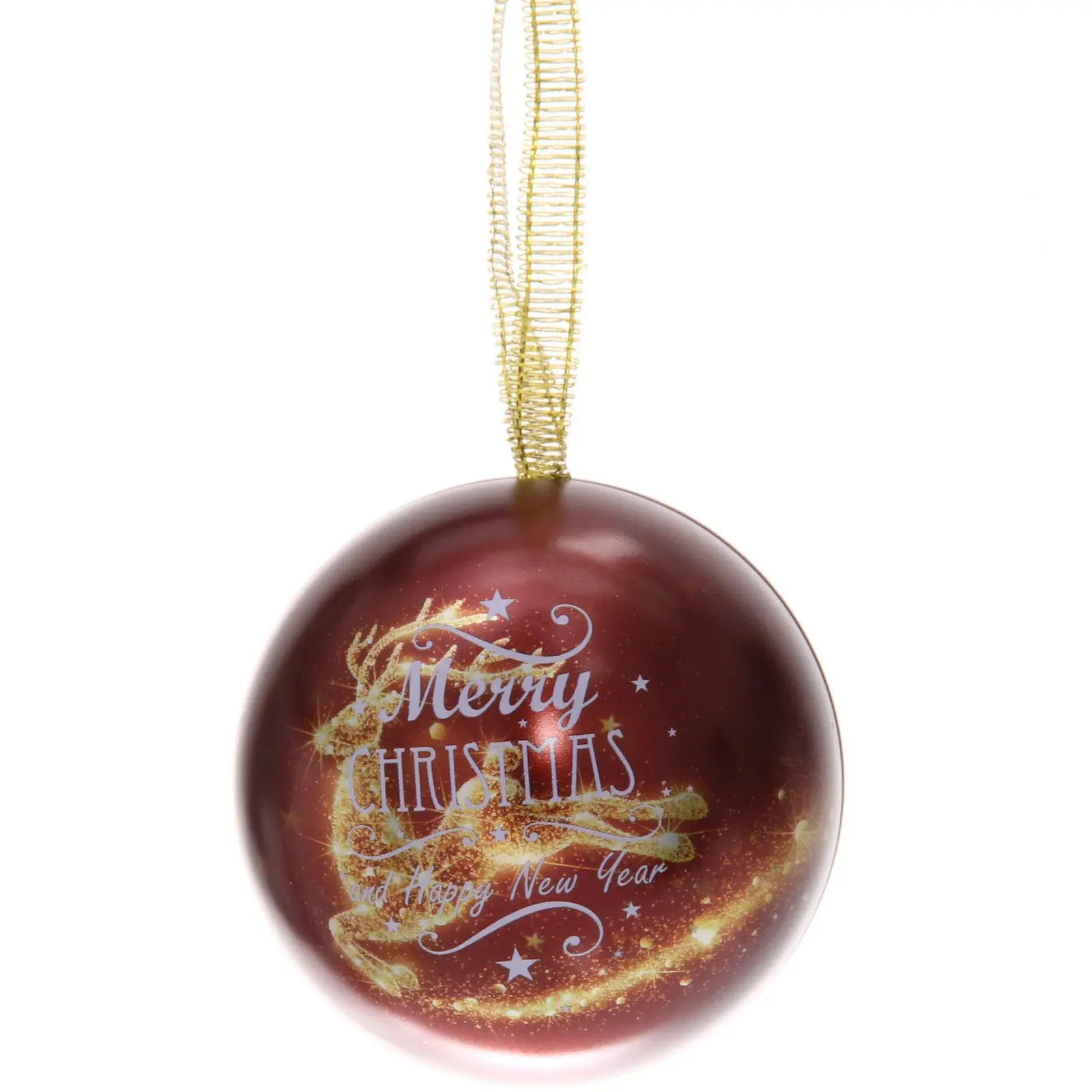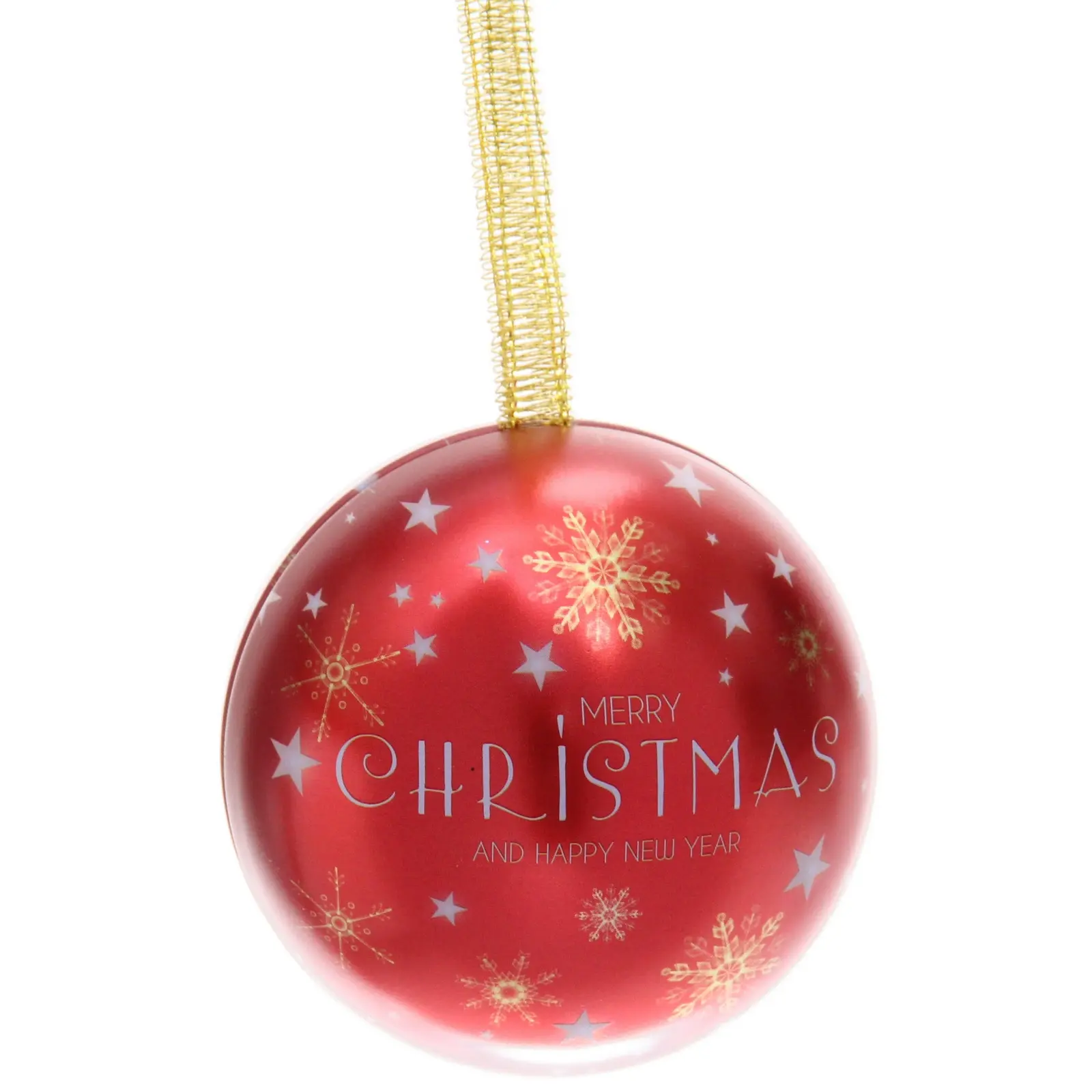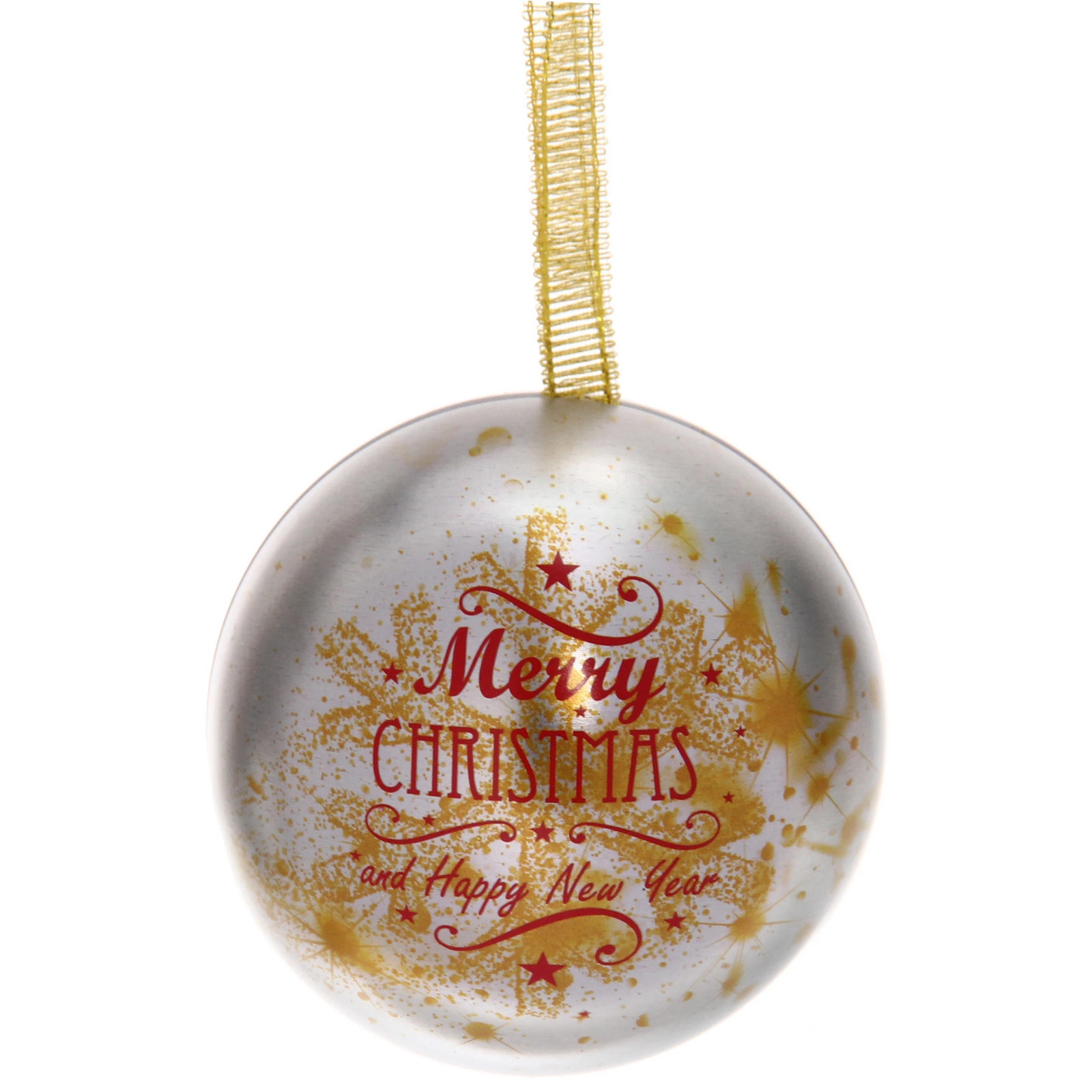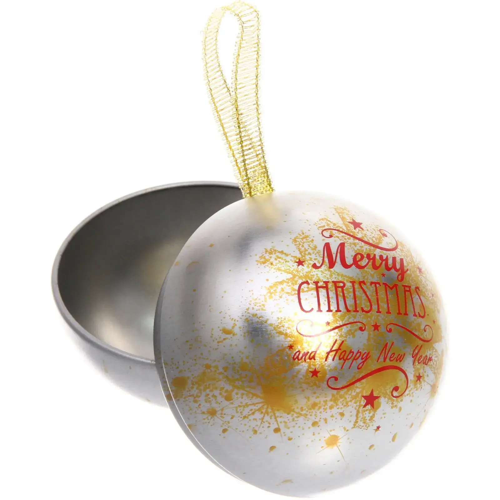 Новогодняя упаковка жестяная банка «Новогодние шары» 6,5 см, 1 шт, праздничный декор с надписями Merry Christmas