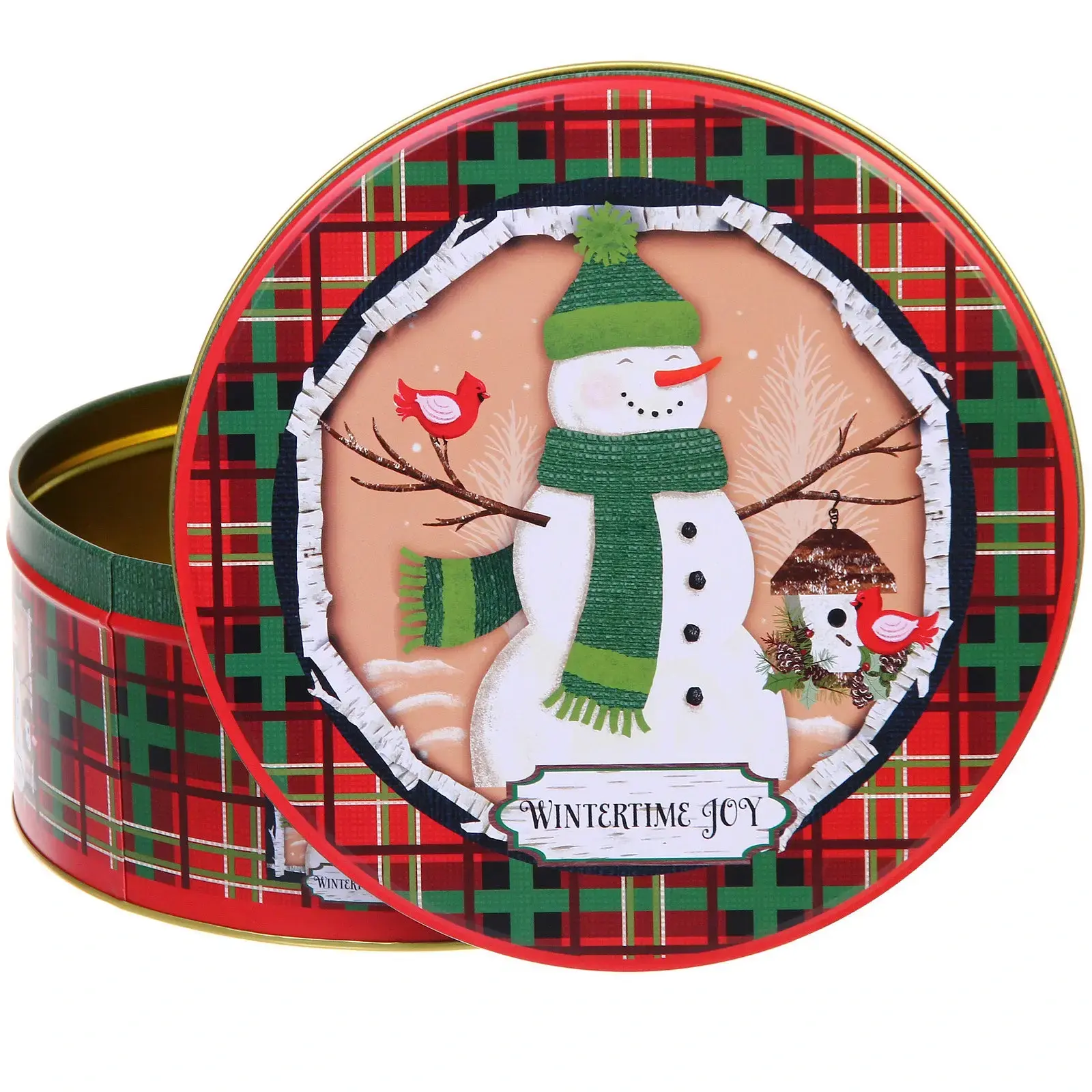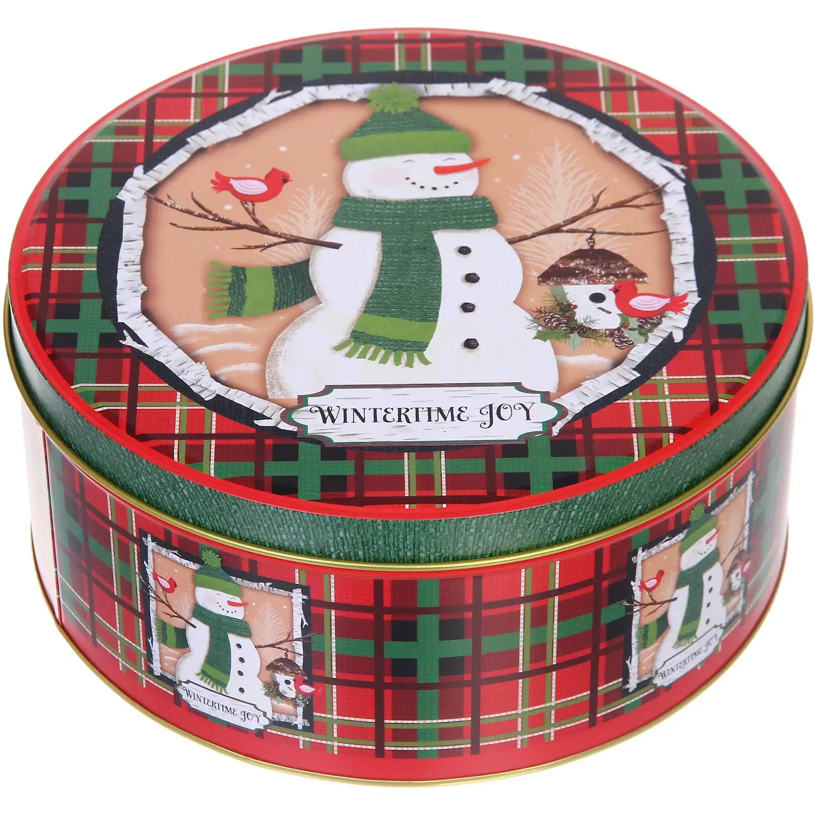 Новогодняя упаковка банка жестяная 'Новогодняя ёлочка' 2200мл, 19.6*8см, дизайн с снеговиком