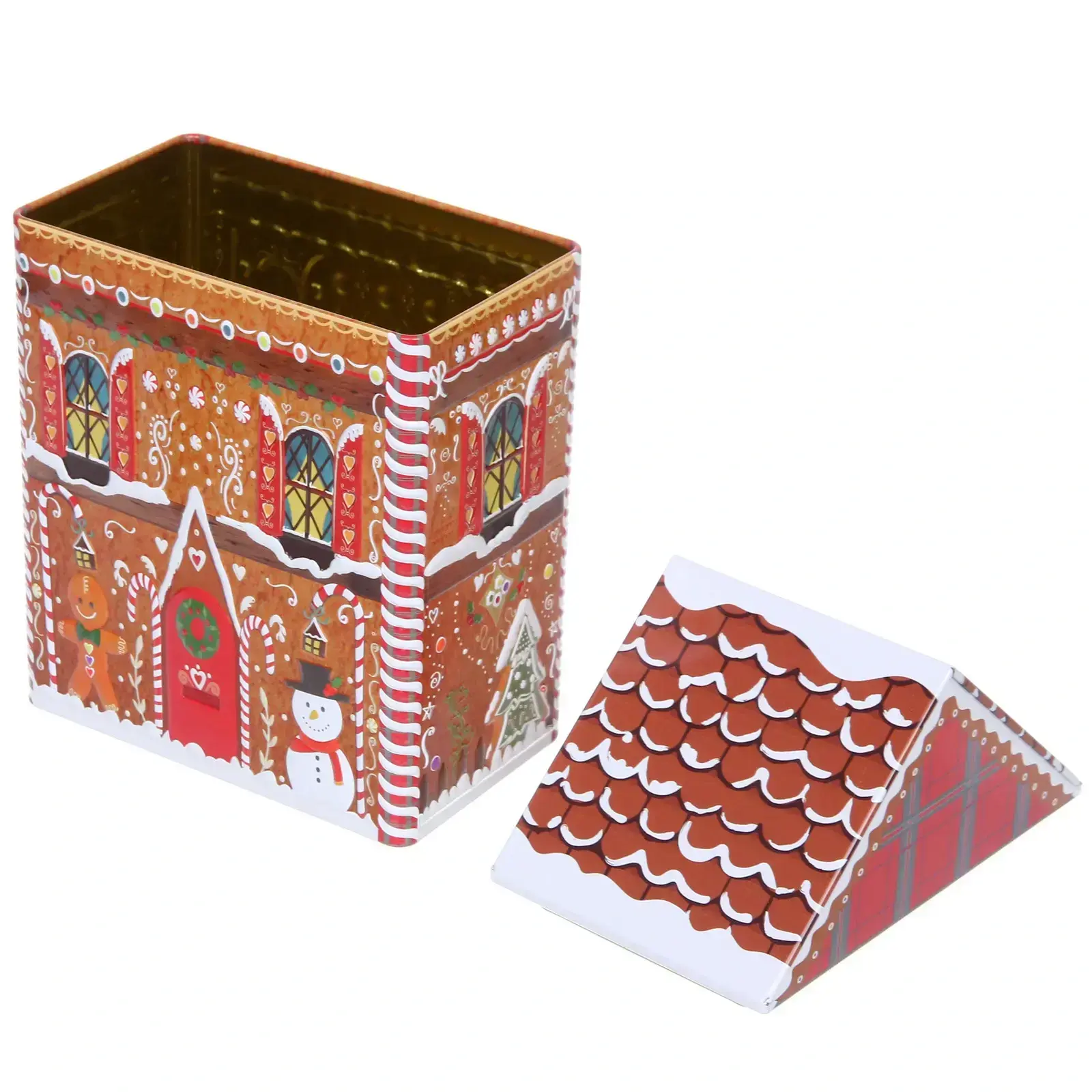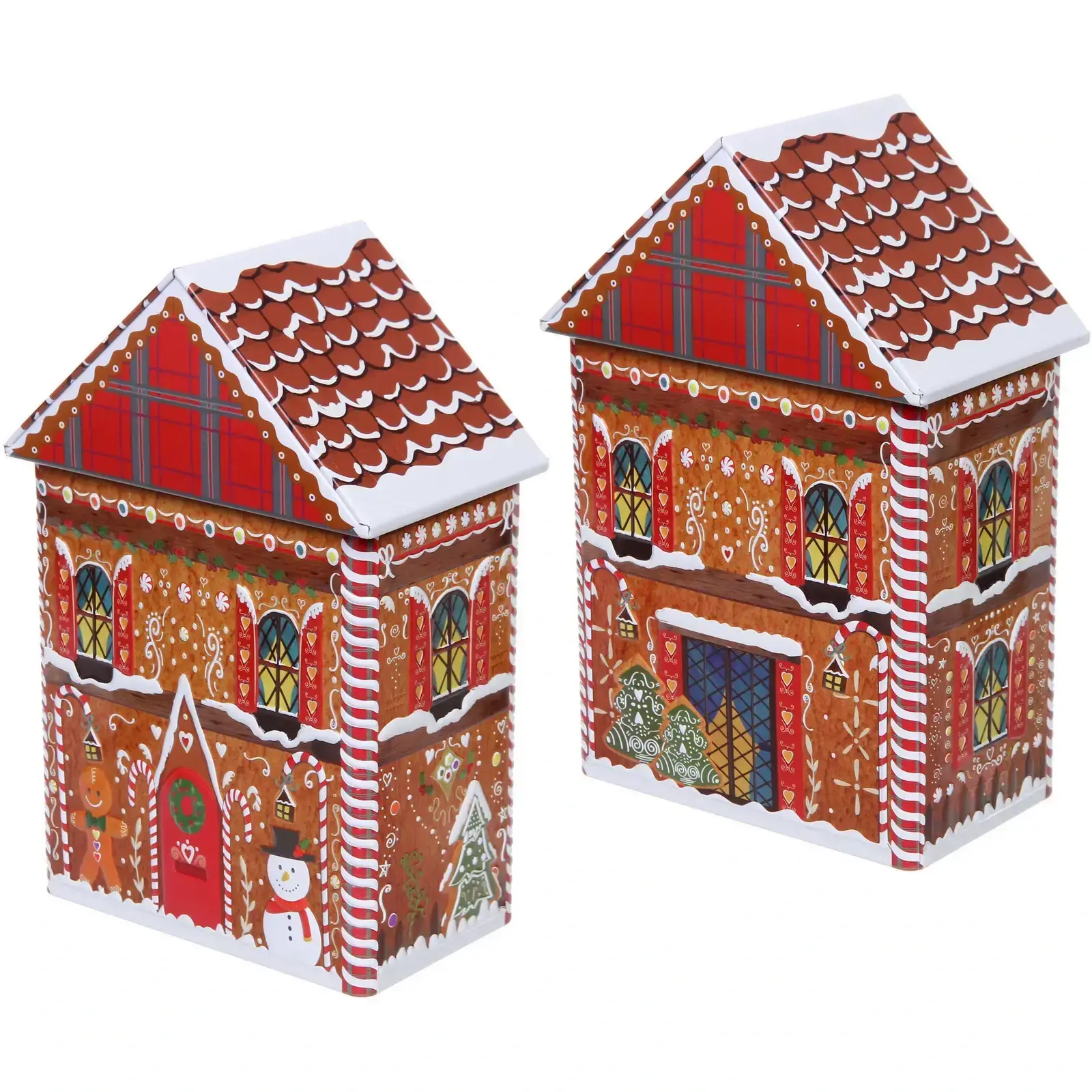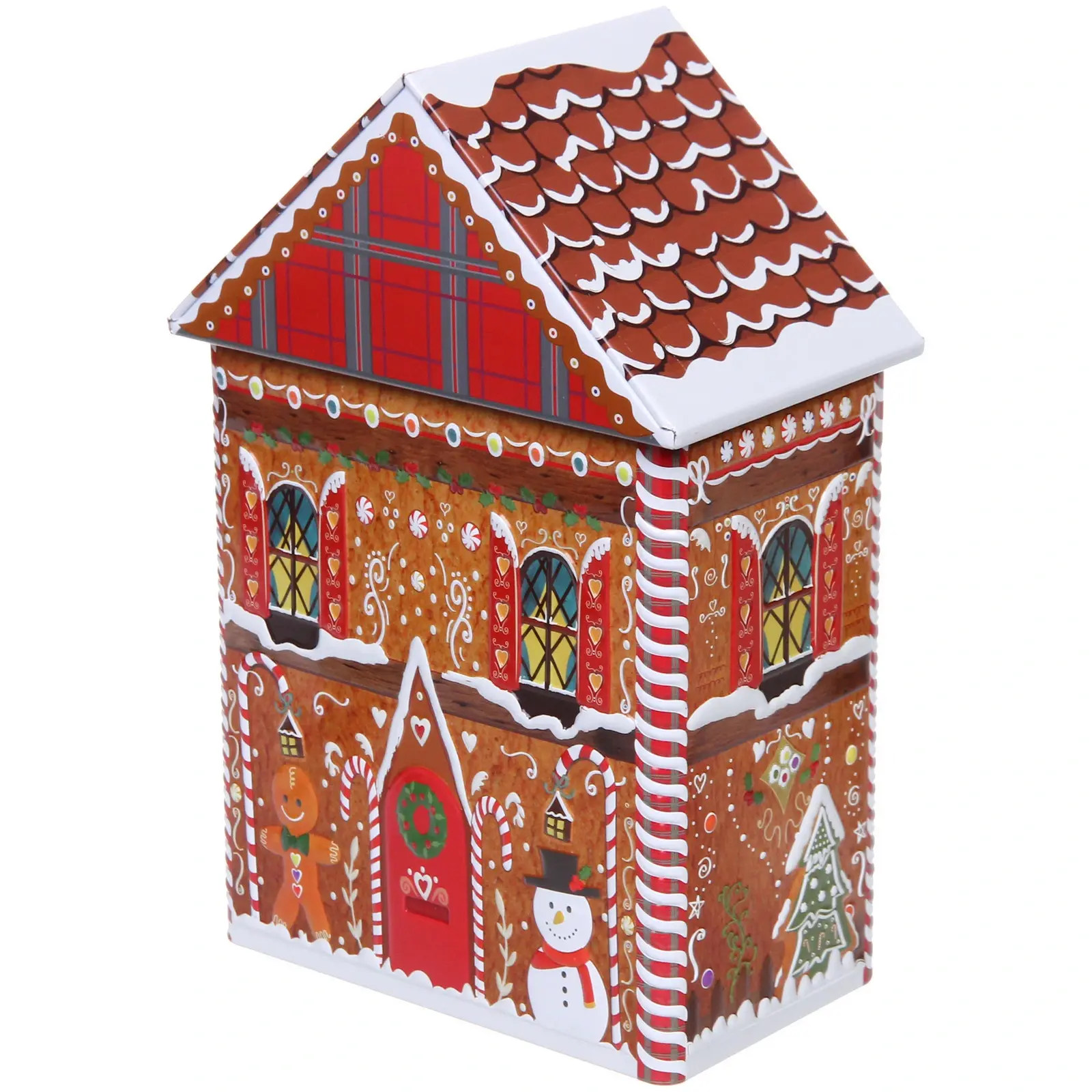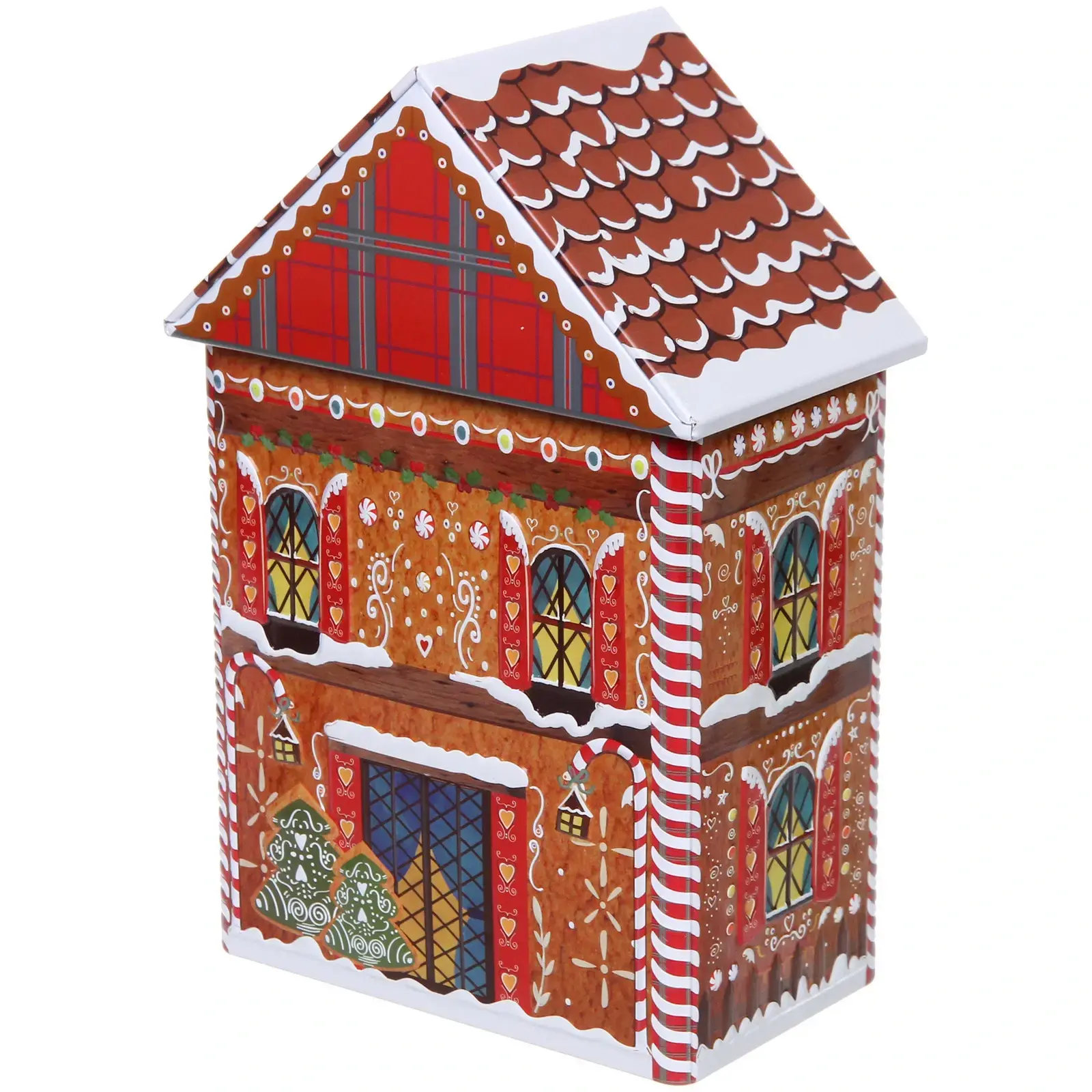 Новогодняя упаковка банка жестяная 'Пряничный домик' 14,5х24,5х9см, для хранения сладостей и подарков