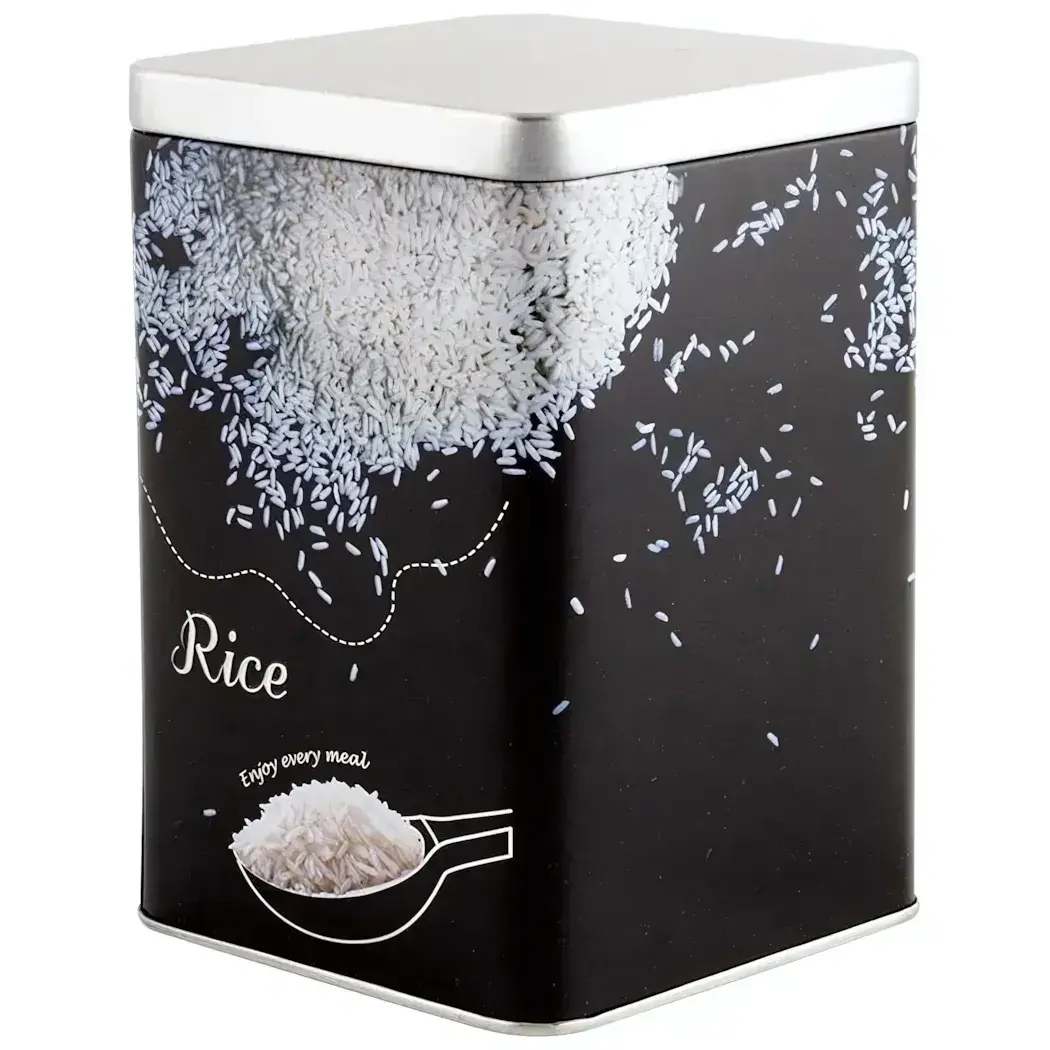 Банка жестяная для риса с герметичной крышкой, квадратная, 1 л, дизайн «Рис», цвет чёрный