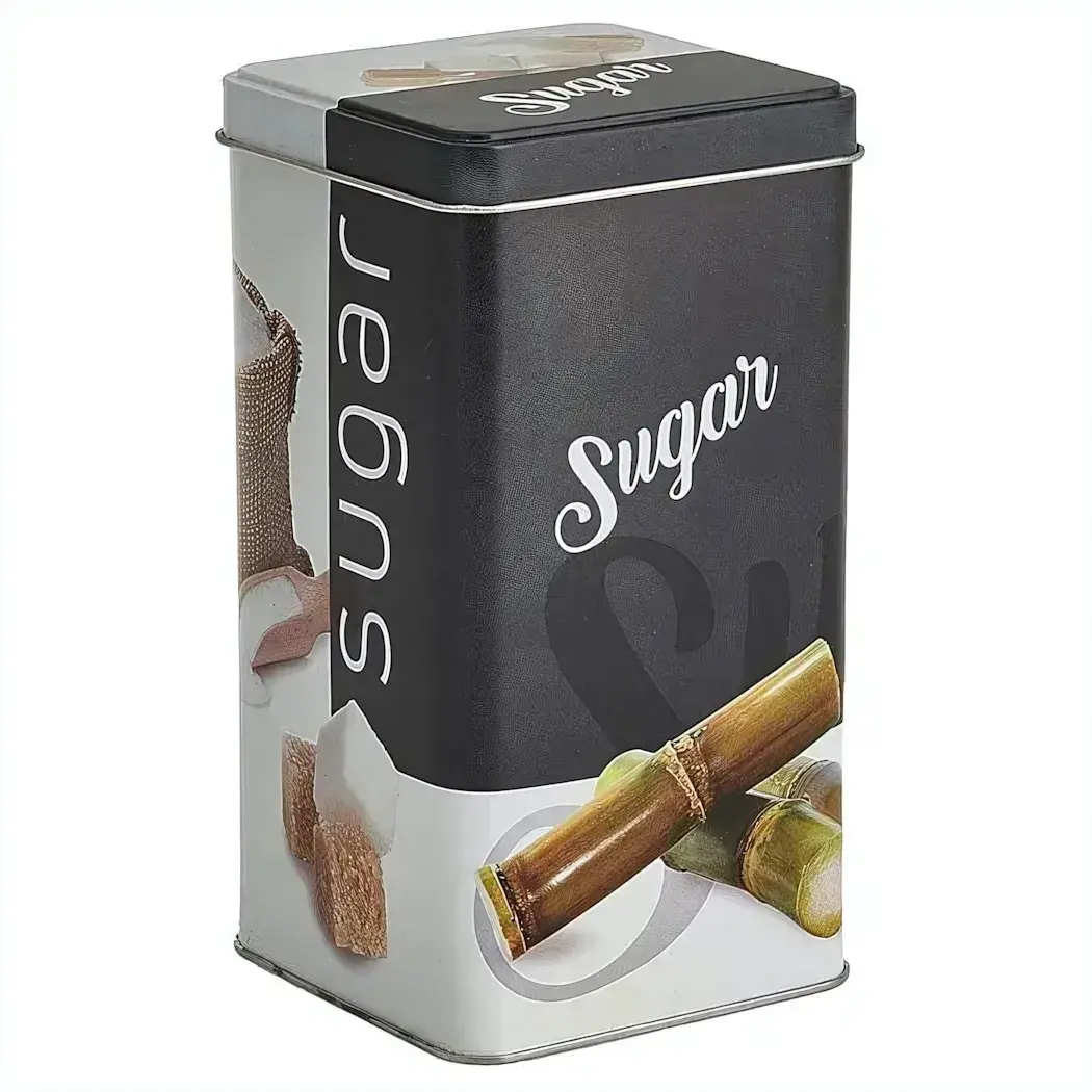 Объем и размеры не обозначены на фото, однако дизайн с изображениями сахарного тростника и кубиков создает привлекательный вид и ассоциацию с натуральностью и качеством. Банка отлично подойдет как для домашних, так и для коммерческих нужд, например, в кафе или магазинных прилавках.