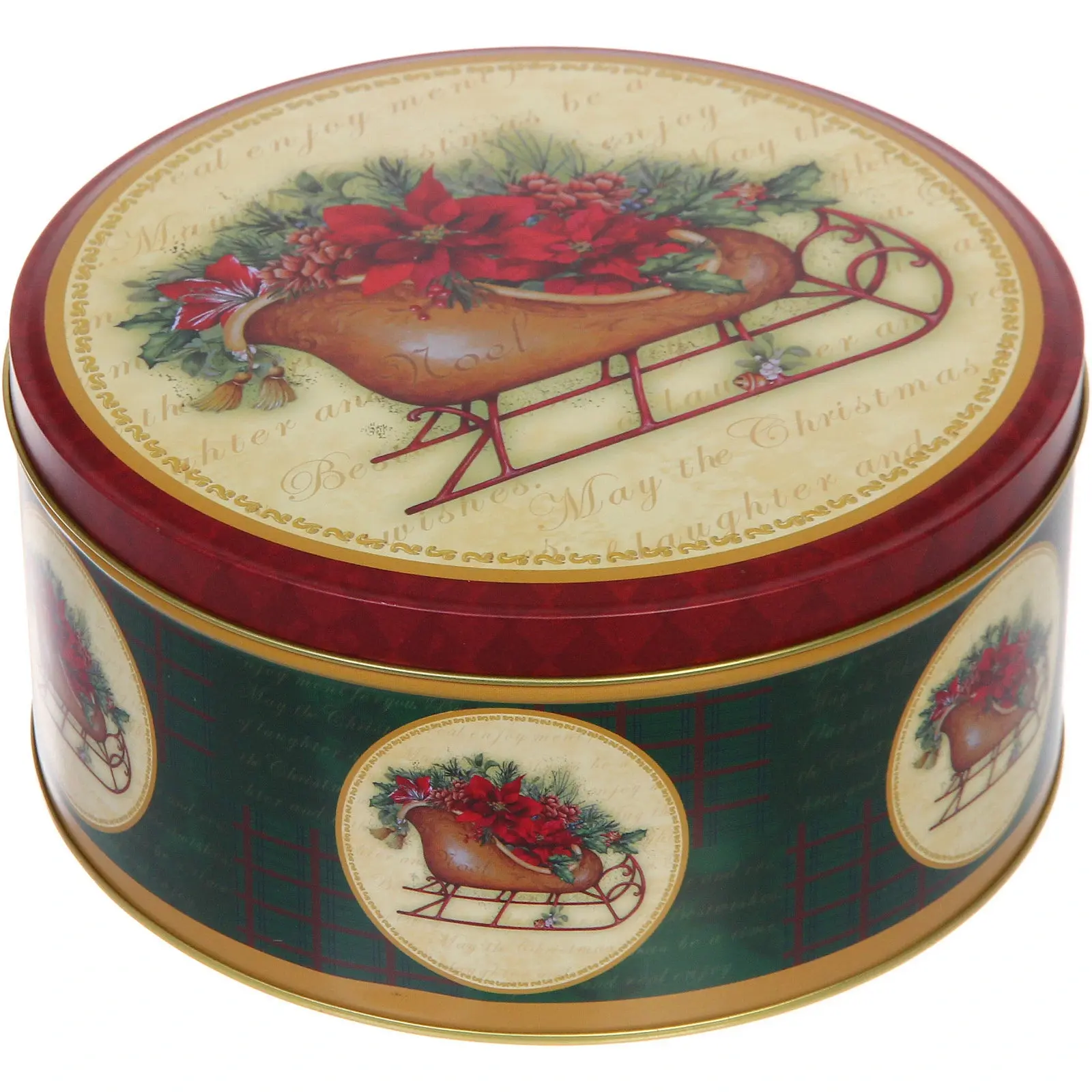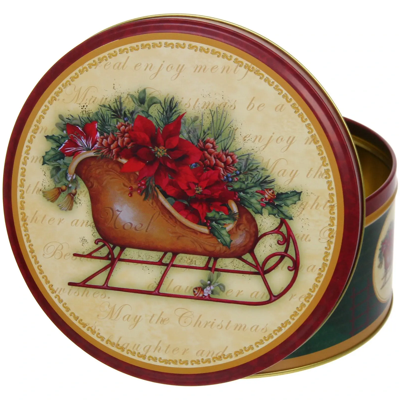 Изготовленная из качественной жести, банка отличается прочностью и долговечностью. Герметичная конструкция надёжно защищает содержимое от влаги и посторонних запахов. Праздничный дизайн с элементами позолоты добавит торжественности любому пространству.