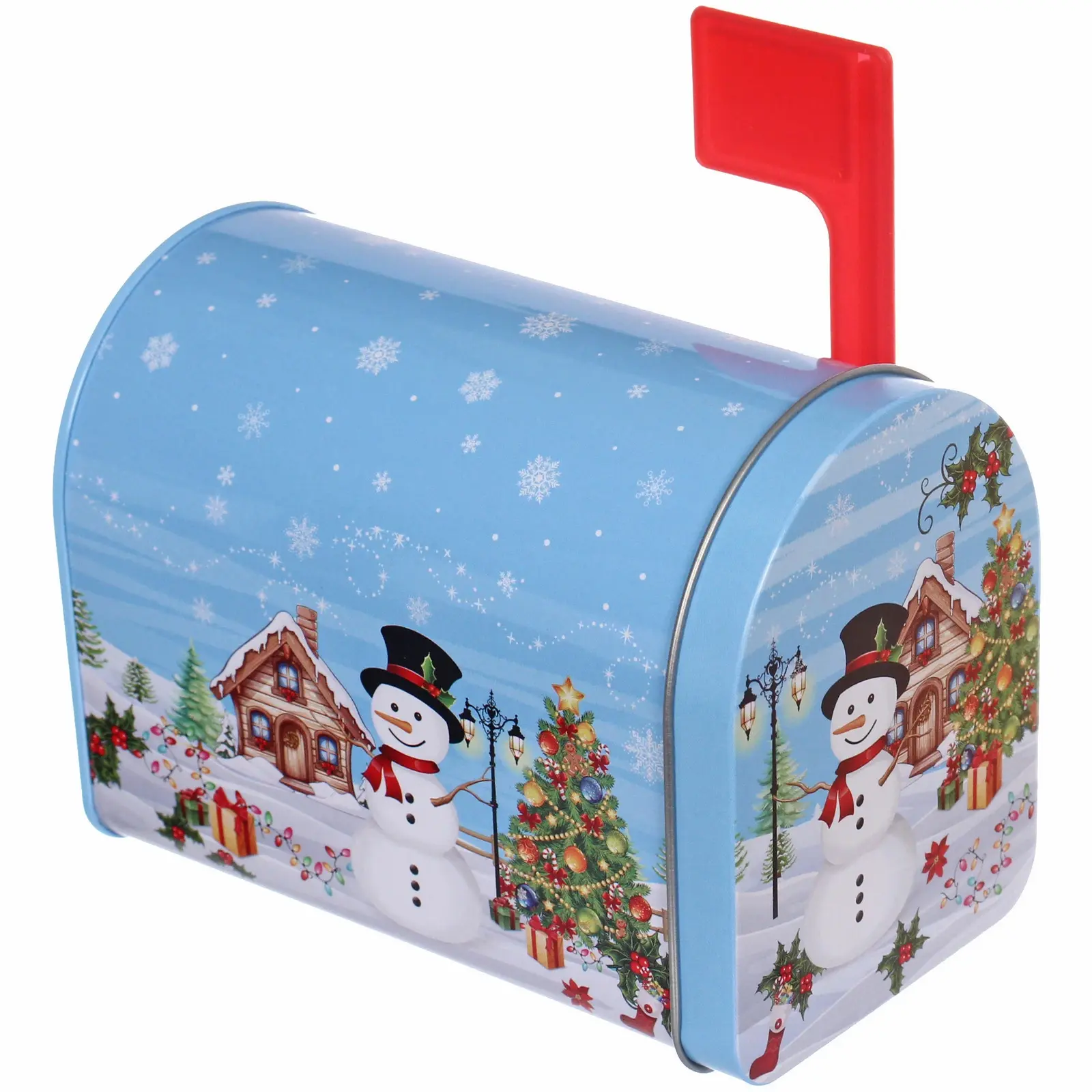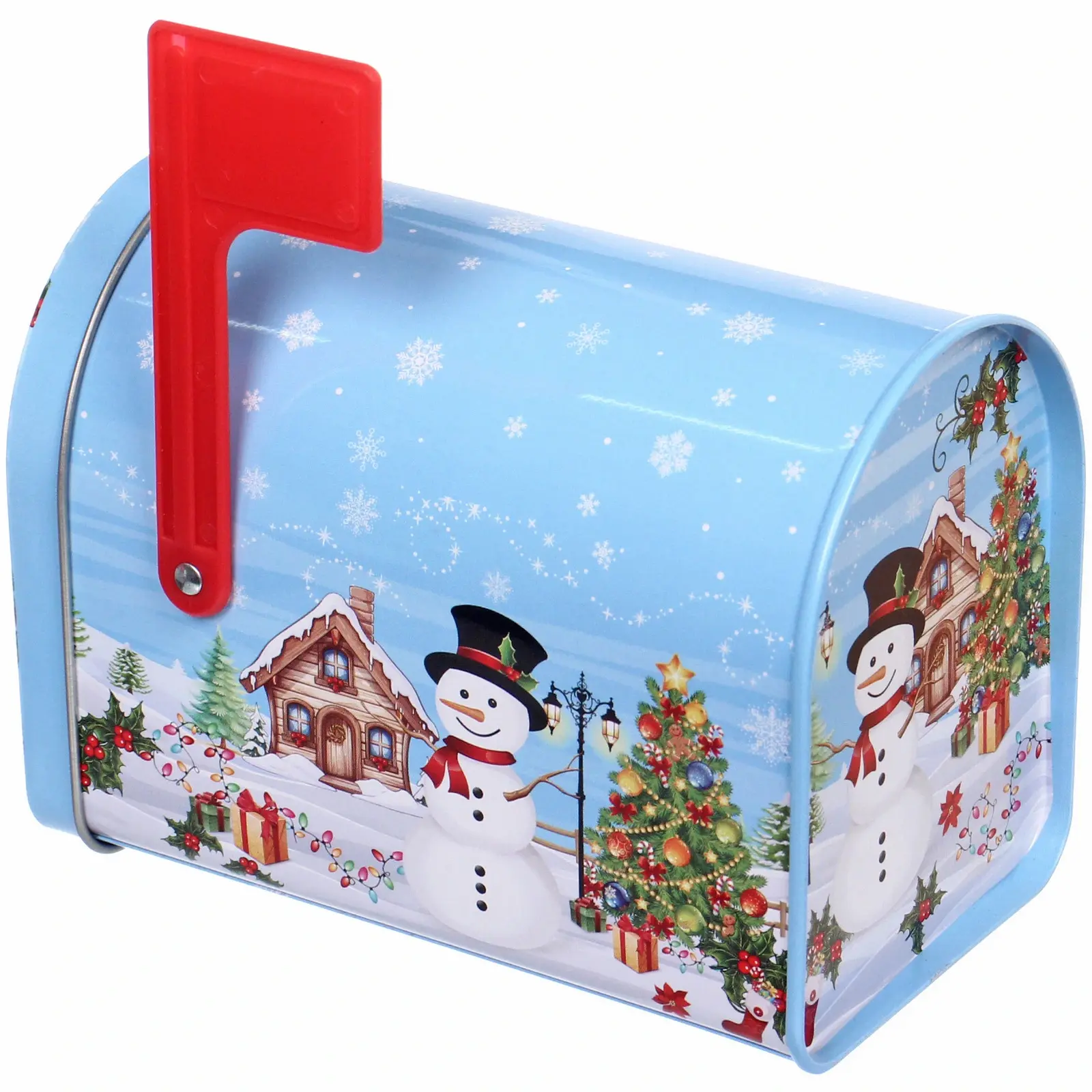 Новогодняя упаковка банка жестяная 'Сказочный Снеговик' 13*7.5*9.5см, цвет голубой
