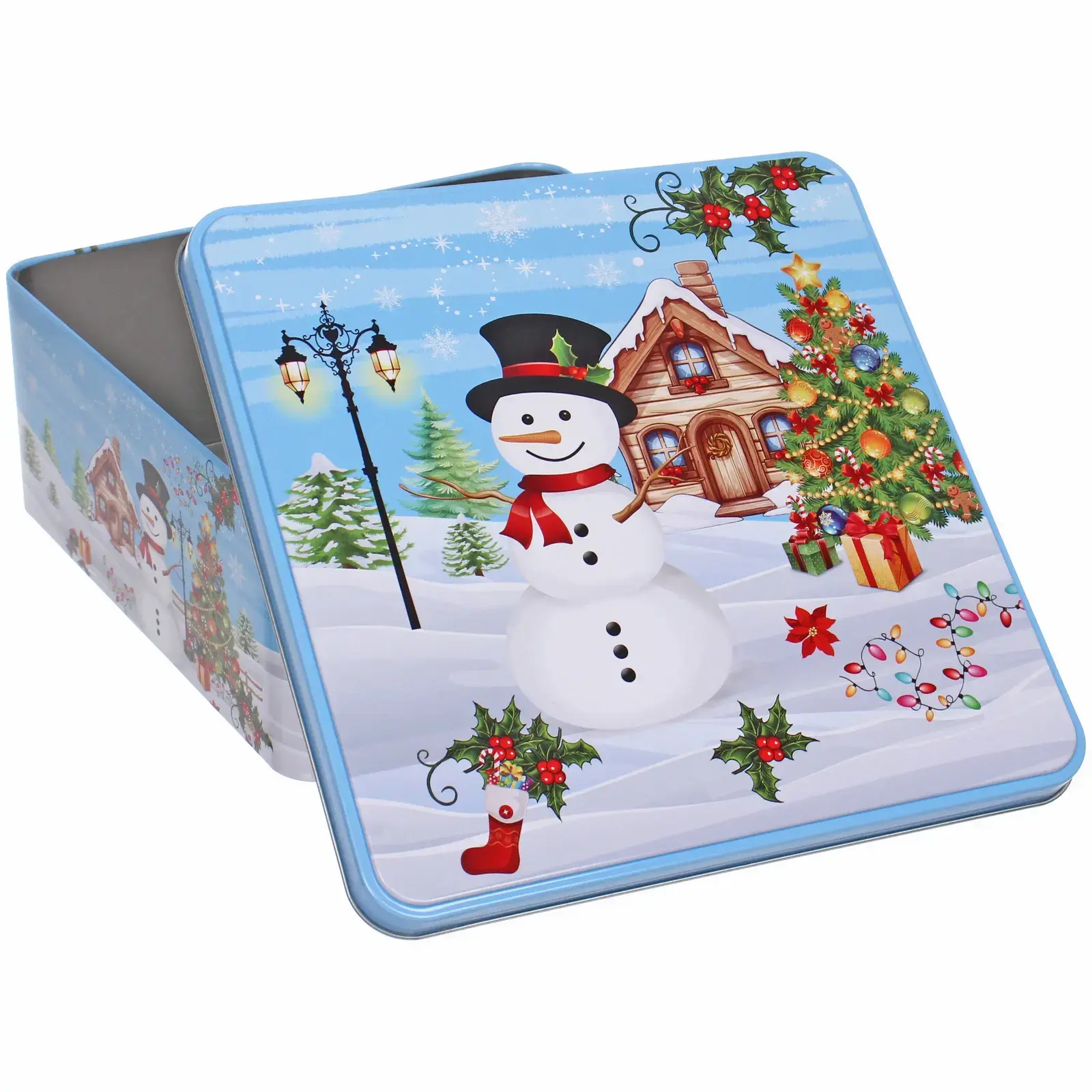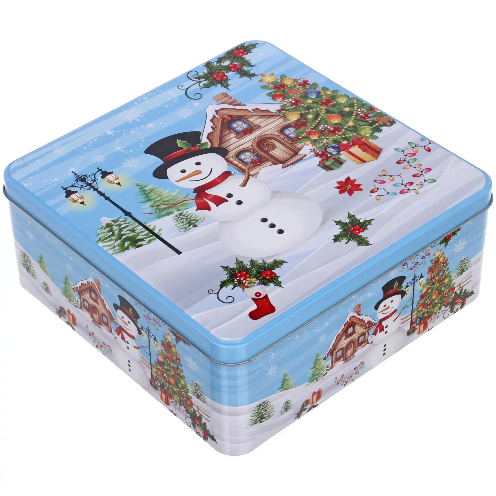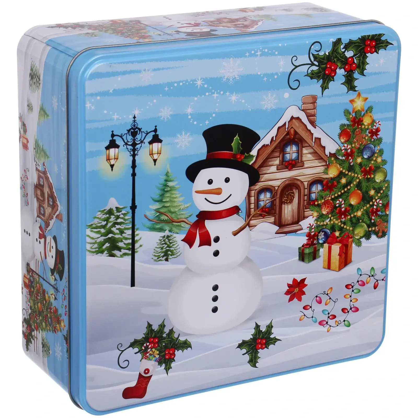 Новогодняя упаковка банка жестяная «Сказочный Снеговик» 2500мл, 19,5*19,5*8см