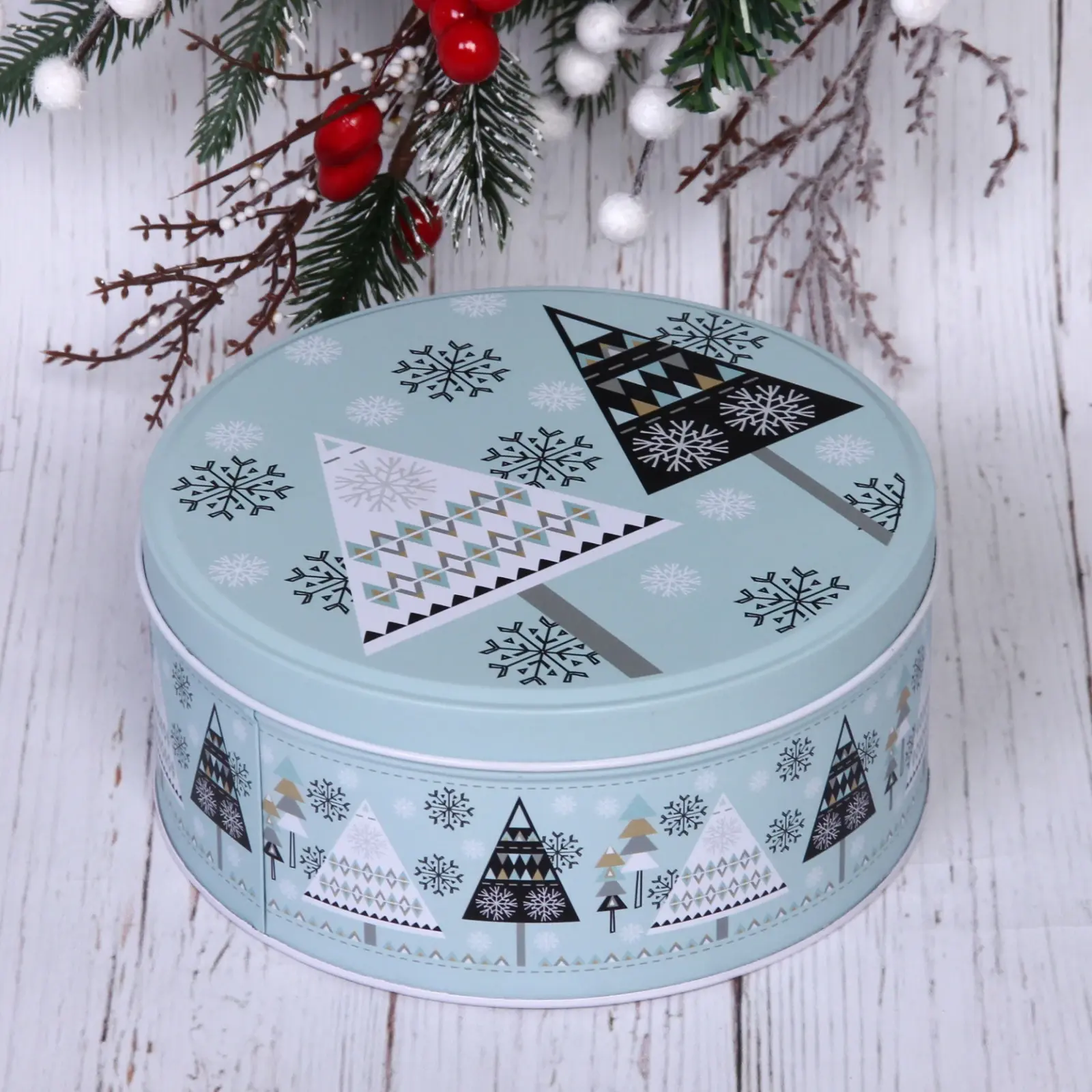 Подарите своим близким радость с помощью банки жестяной «Снежинка» объемом 1500мл. Эта стильная упаковка станет идеальным решением для хранения сладостей, конфет или небольших подарков на Новый год. Благодаря зимнему дизайну с изображениями снежинок и ёлок, она создаст атмосферу праздника и уюта.